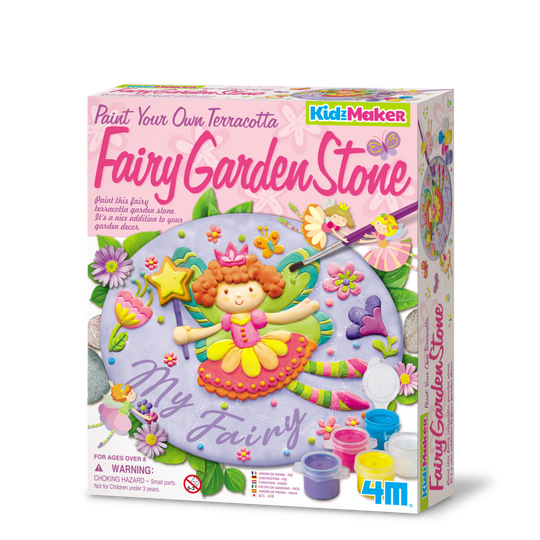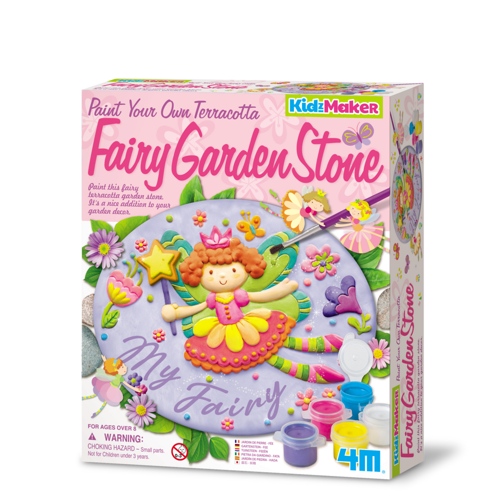 Contents: 1 terra cotta fairy stone, 1 paint strip, 1 paint brush and 1 plastic stand.