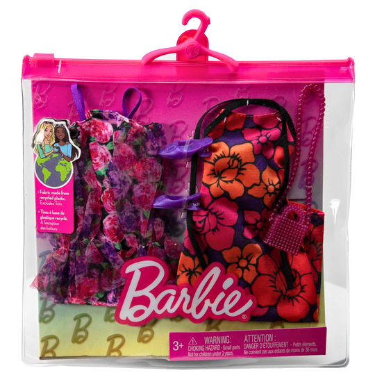 Dress Barbie® doll for any challenge with a wardrobe that can keep up! With doll clothes and accessories for two complete outfits in one fashion pack, these Barbie® clothing sets offer double the styling fun (doll sold separately). Pieces can include dresses, jackets, tops or bottoms -- and the two accessories help to style a complete look. Mix and match within the set and with other fashions in the line to create different looks and explore style.