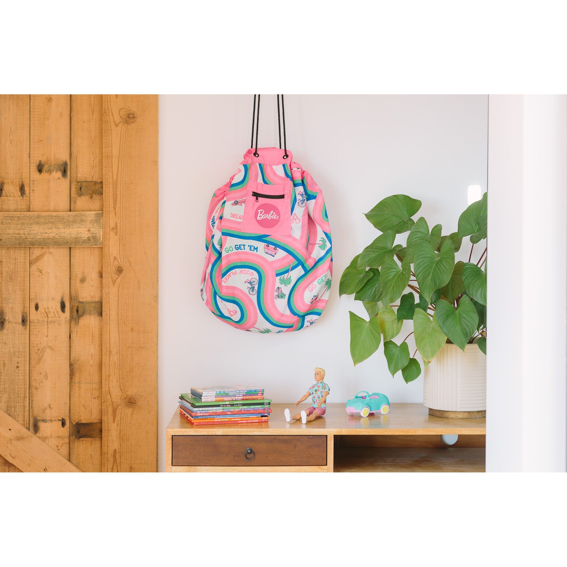 When it’s time to pack away, simply pull on the ropes to gather all the Barbies and accessories neatly away inside the Play Pouch!
