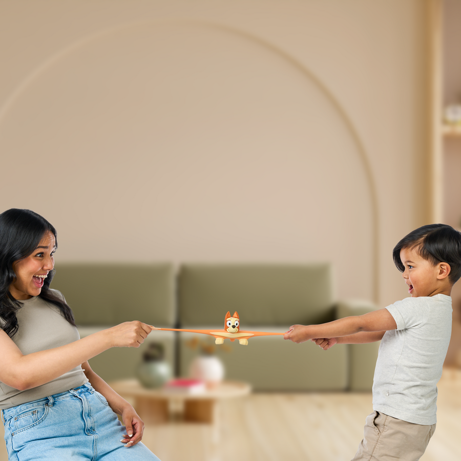 Now your child can play with their favorite Heelers in a whole new way! Stretchy Bingo has a squishy filling that makes her feel soft, squishy and super stretchy. Squeeze, stretch and play with her like never before! Bingo can stretch up to 3 times her size! Let her go and watch her return to her original shape and size. Collect both Stretchy Bingo and Stretchy Bluey so your child can create their own Bluey adventures!