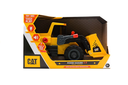 With the Cat® Power Haulers, you’re in control! These vehicles feature Motion Drive Technology™, allowing for fun and interactive play that brings the action to life! Push the vehicle forward to make the engine rev and activate the lights. Push the vehicle backward to hear back-up sounds. Move the bucket or dump bed to hear hydraulic sounds and flash the lights. With a new lights and sounds update, these vehicles now have a cabin light-up feature. Through play, little builders activate these awesome vehicle features, ensuring a fun and interactive Cat experience every time they play. Appropriate for ages 3 years and up. Batteries included. Collect them all!