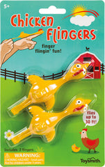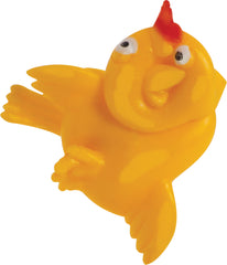 Send these 10cm sticky chickens soaring up to 10 meters with a flick of the wrist. Two stretchy chickens on a card.
