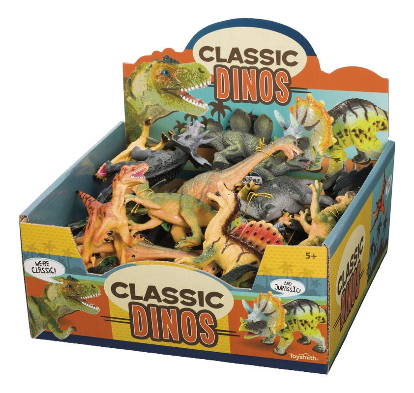 Price is for 1x Dinosaur. Pictures indicative of styles. Classic Dinosaurs are 18cm colourful, moulded plastic dinosaurs. Assorted styles. Each sold seperately. As this item is an assortment please let us choose on your behalf or state any preferences in the comments section and we will do our best. Size: 150mmW x 80mmH x 40mmD