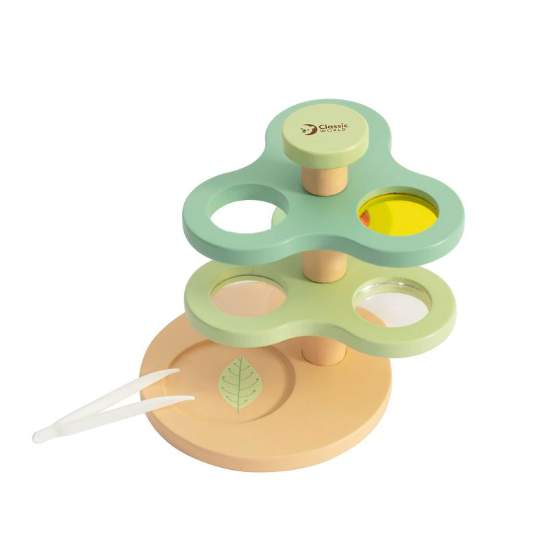 Lets explore the natural world! This microscope toy includes concave mirrors, a magnifying glass, prisms and coloured lenses. A great way to stimulate children's interests in science and discover the magical wonders of nature.2 Pieces