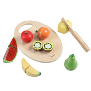 Cutting Fruit helps children to recognize the different fruit and learn the use of a knife through fun play, stimulates children's imagination and help them imitate what they see happening in the home. Includes 17 pieces.