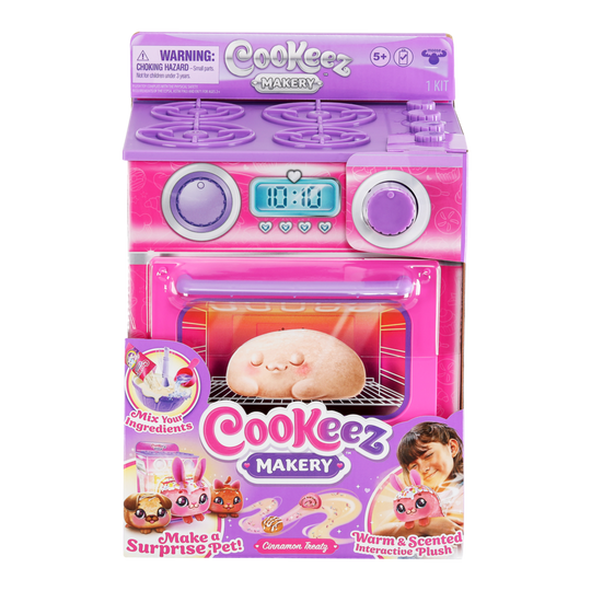 Cookeez Makery will amaze you and your child when they bake a surprise plush best friend! As they open the oven door they will discover their own warm and scented interactive plush friend in the shape of a yummy smelling baked treat!
