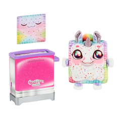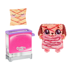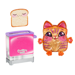 Which surprise plush will pop up out of the Cookeez Makery Toasty Treatz Toaster? First pop the bread into the toaster slot, then slide the toy toaster's handle down. Now slide the handle back up to reveal the cutest Toasty Treatz surprise plush! Toasty Treatz are soft, squishy and deliciously scented collectible plush in the shape of adorable breakfast treats! Which one will pop up?