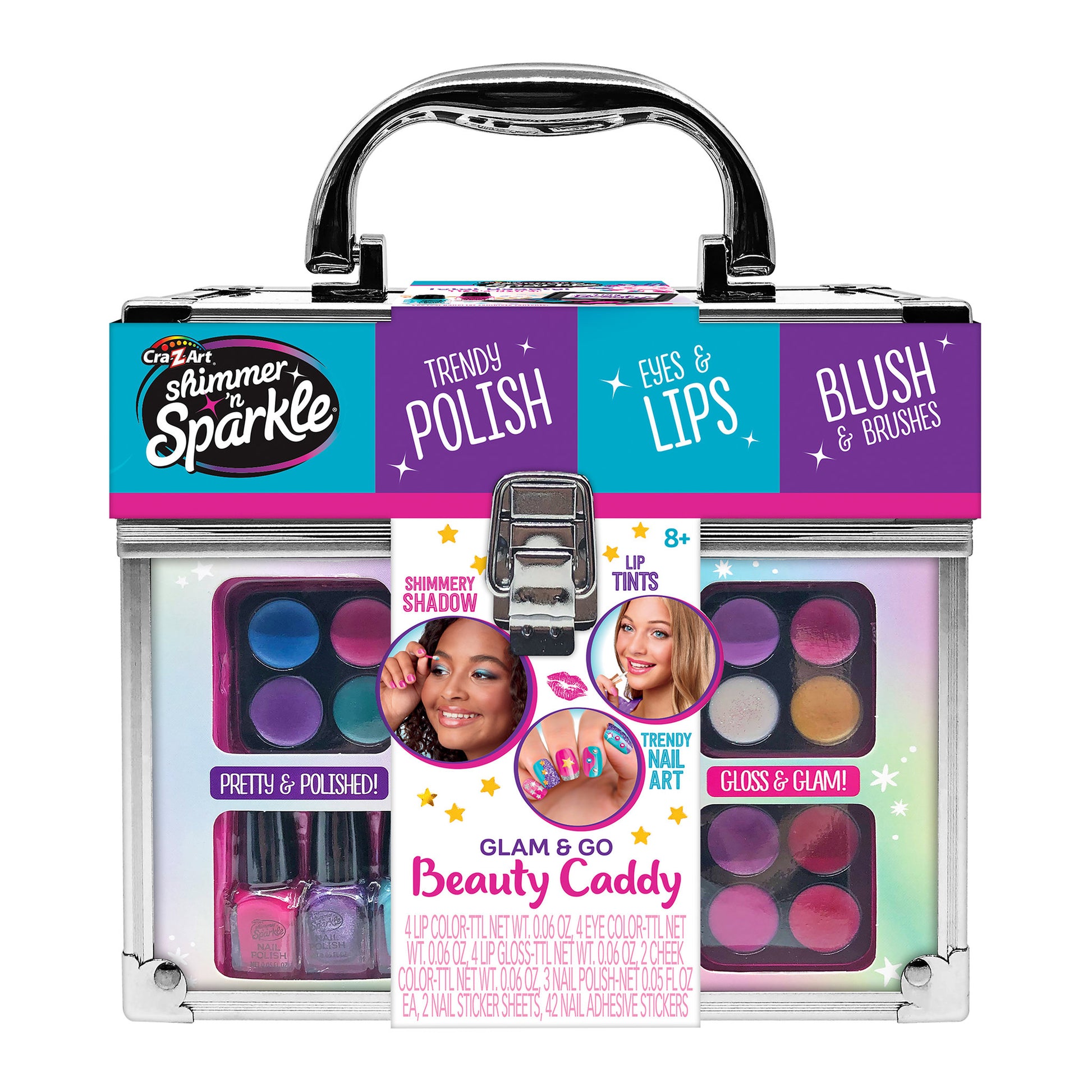 Shimmer 'N Sparkle Glam To Go Beauty Caddy is a dazzling collection that offers endless opportunities for creative expression. This beauty caddy is packed with makeup essentials, nail polish, and glitter for a complete glam experience.
