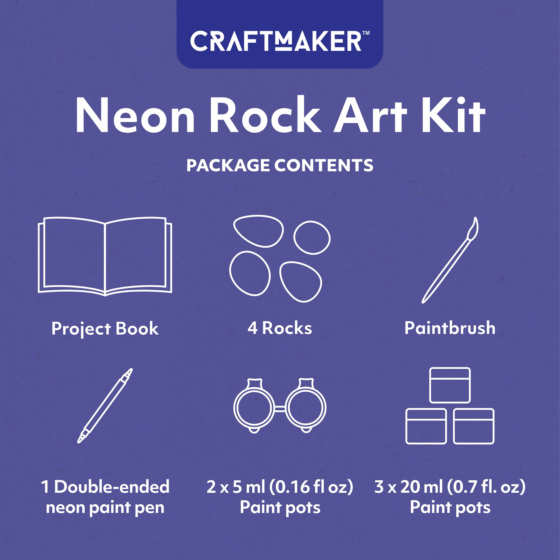 Relax, create and illuminate your creativity with the Craftmaker Neon Rock Art kit.