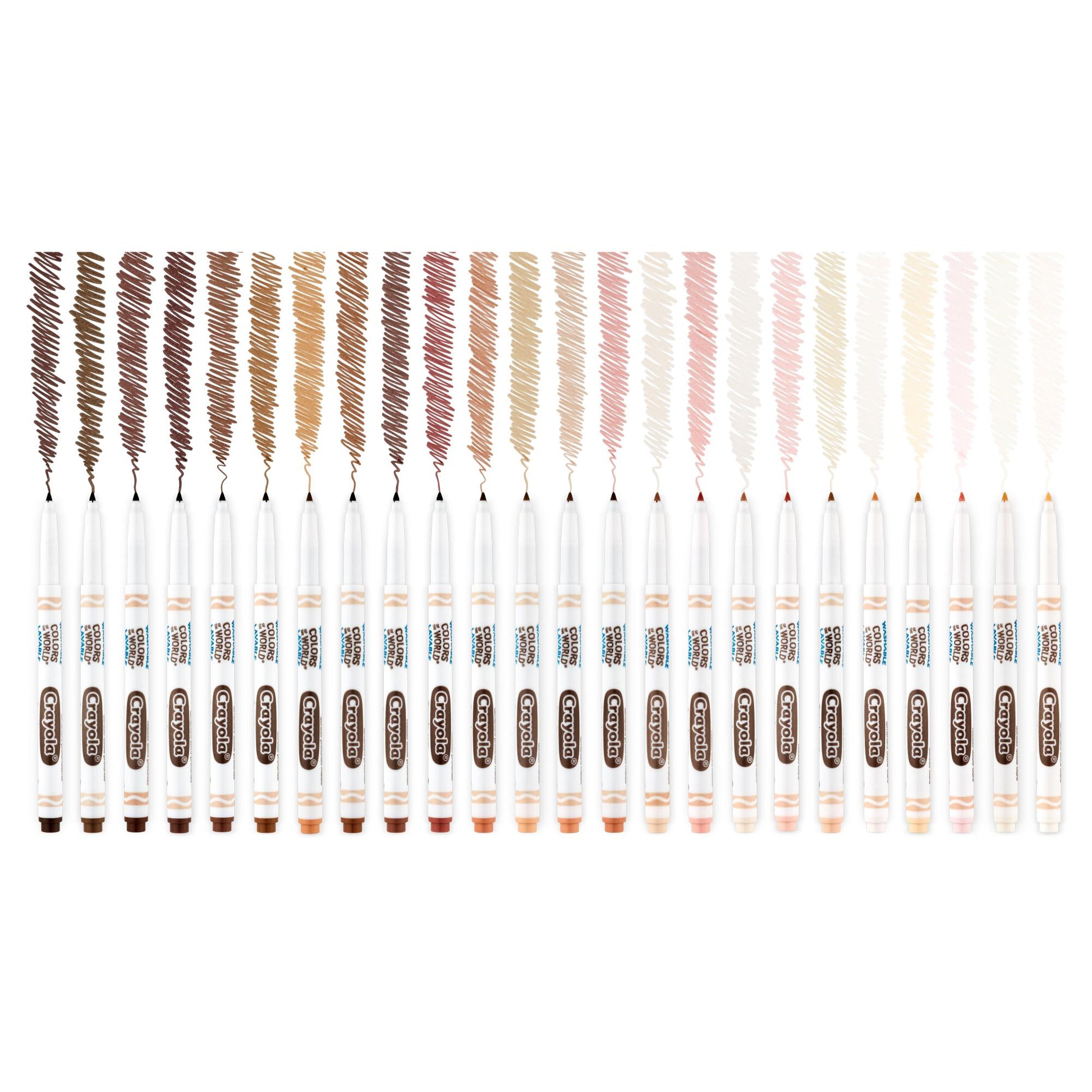 Crayola Colors of the World Fine Line Markers contain 24 specially formulated, washable colors that represent people from around the world. Now it's even easier for kids to color themselves, their families and friends from all over the globe.
