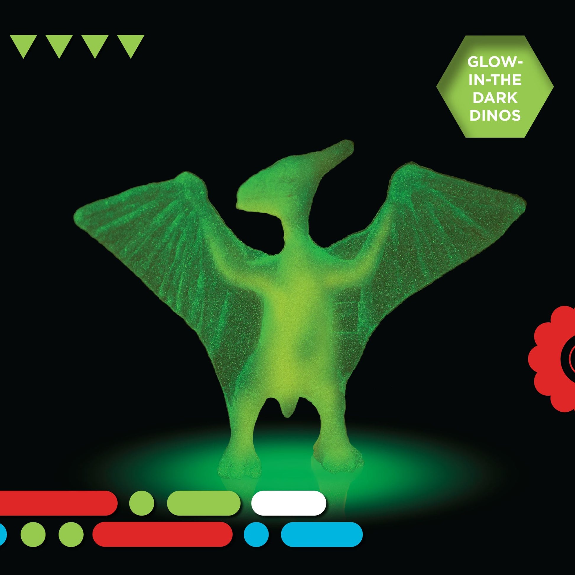 Kids can dig for glow-in-the-dark dinosaurs using the included tools. This set includes 6 eggs with a dinosaur hidden in each one, and comes with an egg crate for easy storage.