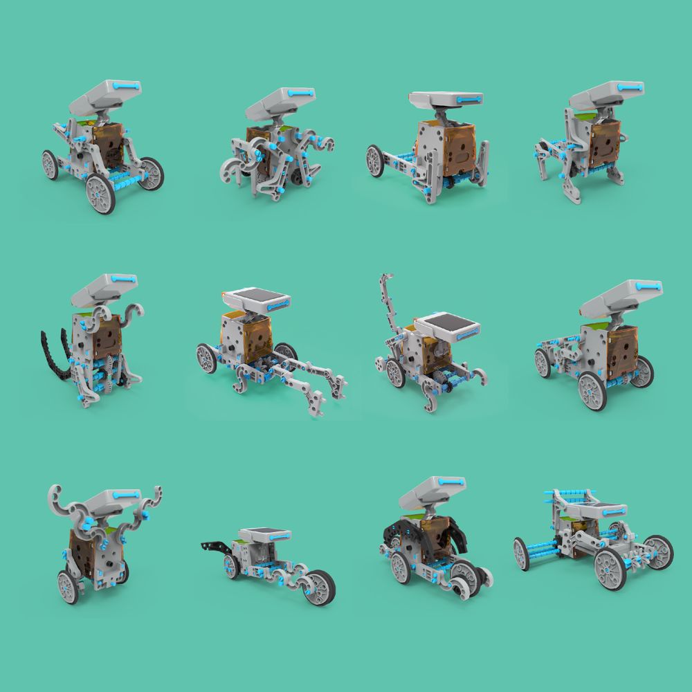 REAL WORKING SOLAR-POWERED ENGINE: The kit includes a solar panel that powers the positive and negative cables. Children will build a real working solar-powered motor that serves as the motorized foundation for each robot model! *For best results: use outdoors on a sunny day! 190 PIECES FOR THE ULTIMATE CUSTOMIZATION EXPERIENCE: 12 robot blueprints are included, but children are free to create their own original robots from their imaginations! Use the instructions to master robot-building, then encourage them to make their own from scratch to test the limits of their creativity!