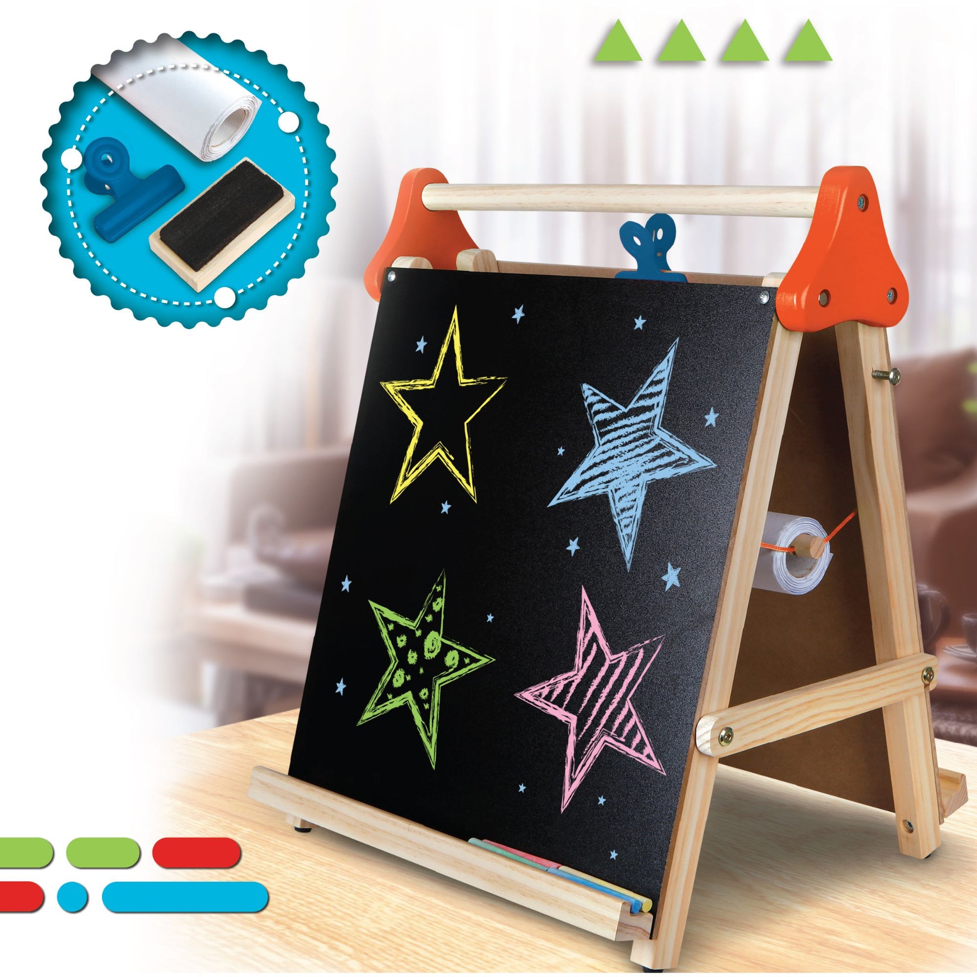 Got an aspiring Picasso or Frida Kahlo in your life? Develop your child's love of the arts with the DISCOVERY KIDS 3-in-1 Tabletop Dry Erase, Chalkboard, and Painting Easel! Crafted with a dry-erase board on one side and a black chalkboard on the other side, this multifunctional easel is also designed with a built-in paper roll holder, so kids can create whatever they want, wherever they want.