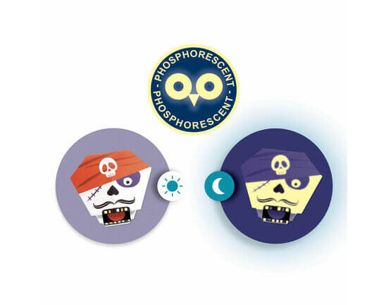 Thrills are guaranteed with this origami set. The characters, once folded the figures emerge from the darkness thanks to the fluorescent ink!