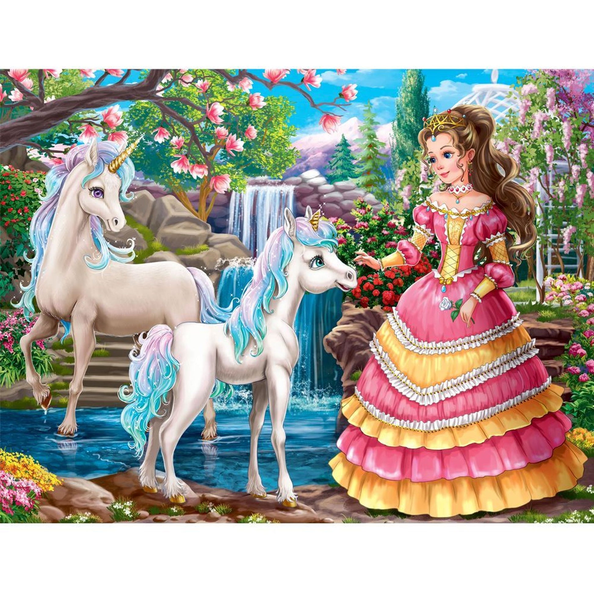 Share in the Fairy & Princess adventures in this series of four Holdson 96pc frame tray puzzle designs. Titles include: Princess Horse Ride, Princess of the Unicorns, Fairies of the Forest and Fairy Magic Fun. Made in New Zealand by Holdson. Approximate product dimensions: 340mm x 240mm.
