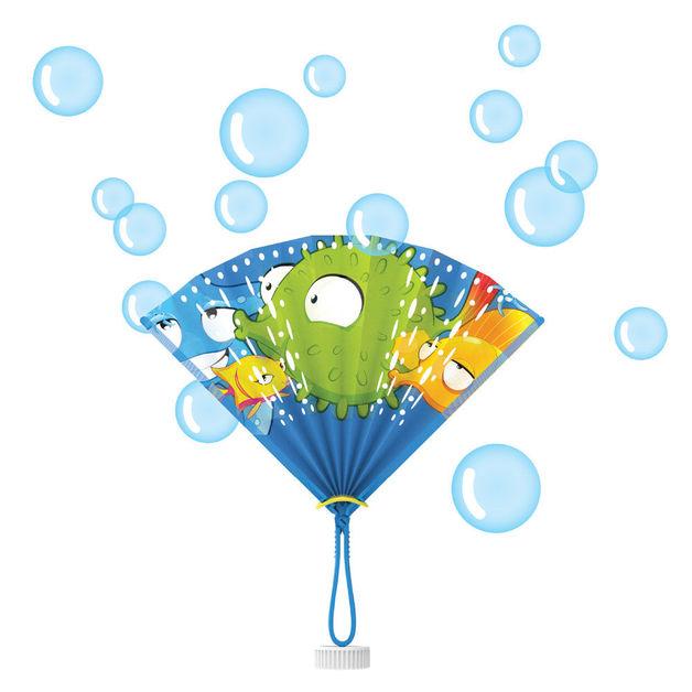 A super compact bubble fan that expands when you squeeze the handle! Fan-O-Rama comes neatly packaged in a test tube with bubble concentrate. Add water to create 50mL of bubble solution, then simply dip it, squeeze the handle to open, and shake the fan to create hundreds of bubbles around you!