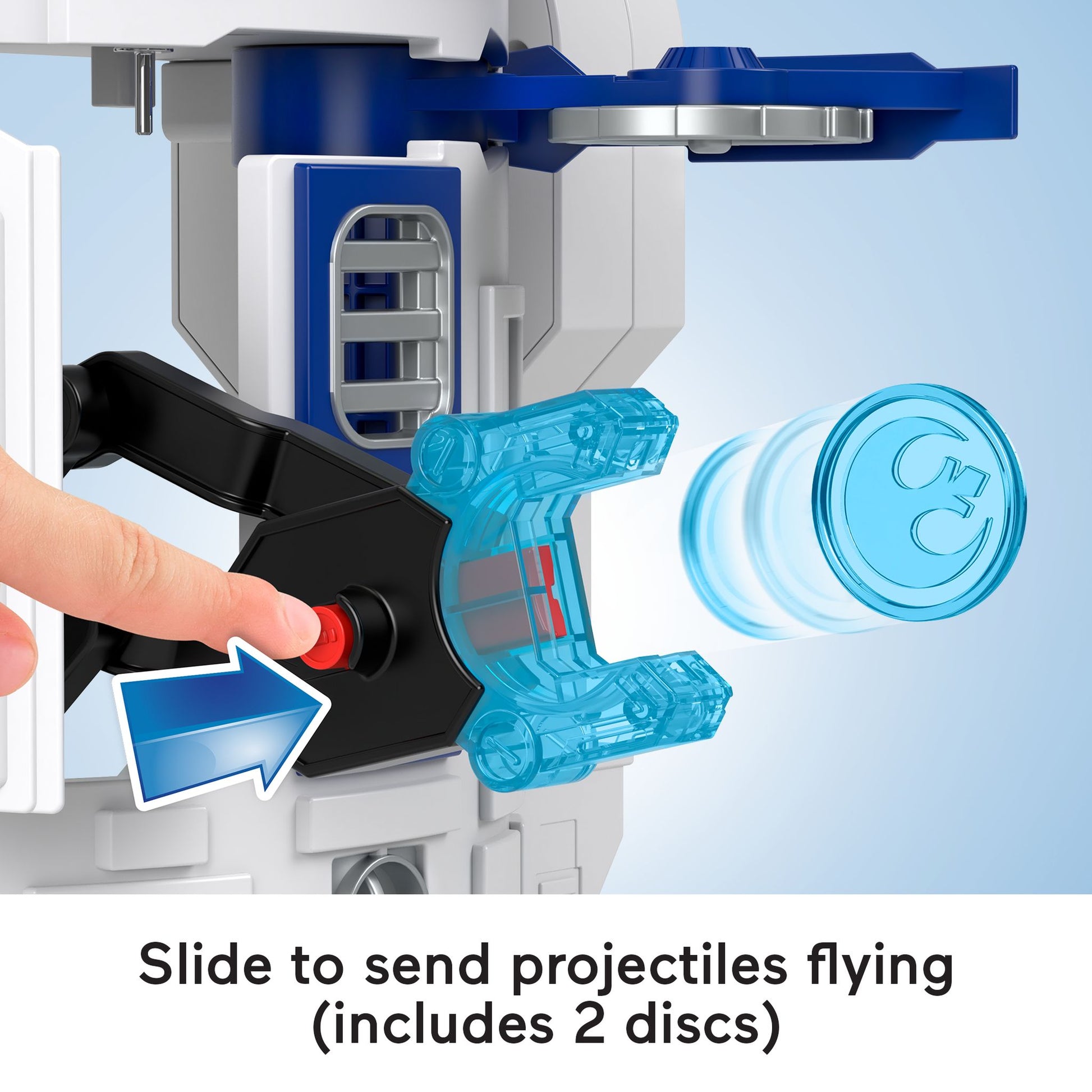 Young fans can create bigtime galactic adventures with the Imaginext STAR WARS R2-D2 toy from Fisher-Price. Standing over 17 inches tall, this interactive toy features cool lights and sounds, a hidden projectile launcher, pretend spinning blade, and lots of awesome kid-controlled action.