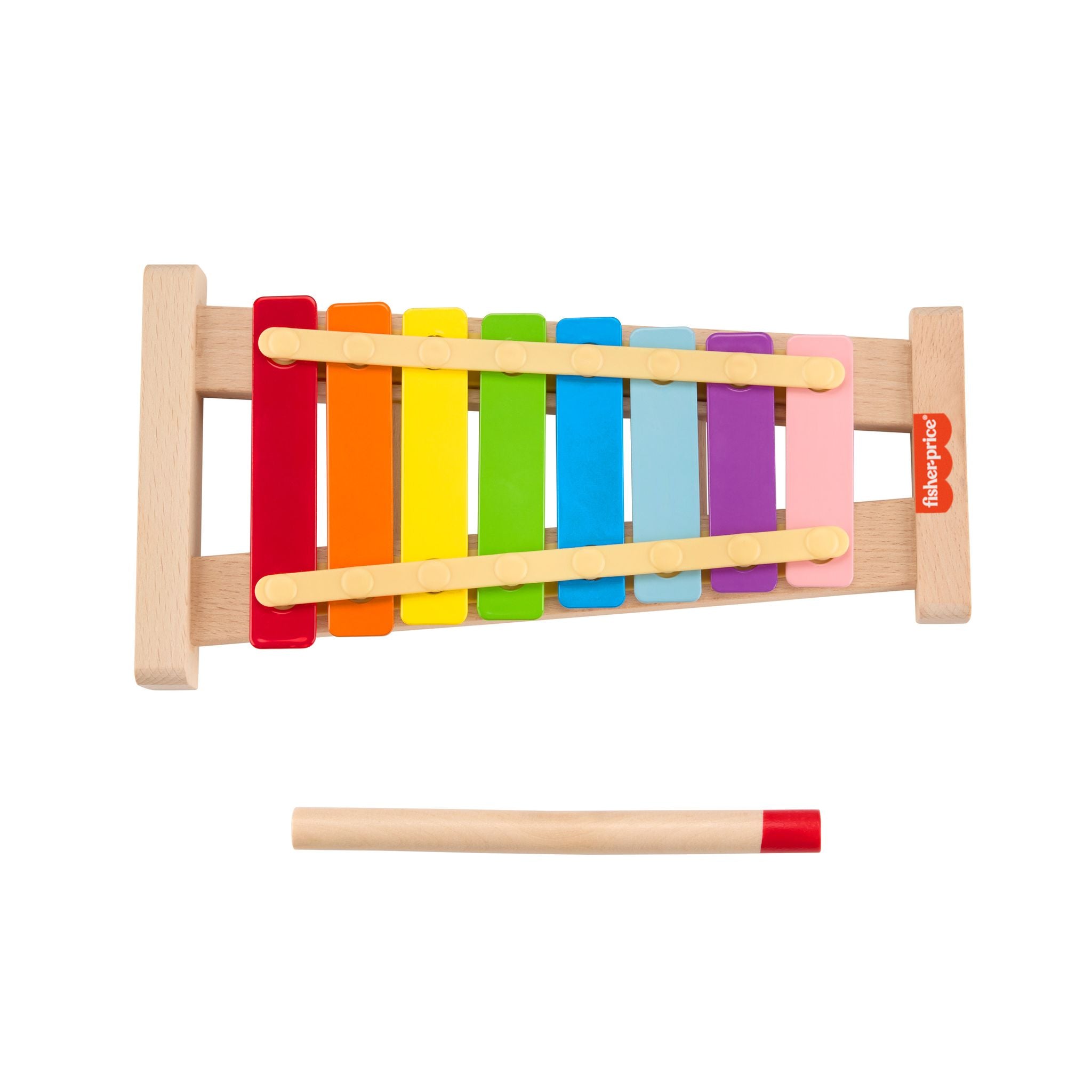 Toddlers will be inspired to explore sounds and tap out tunes on the Wooden Xylophone musical toy from Fisher-Price®. Each brightly coloured metal key plays a different note and is a fun way to encourage your little one to express their creativity while developing their fine motor skills.