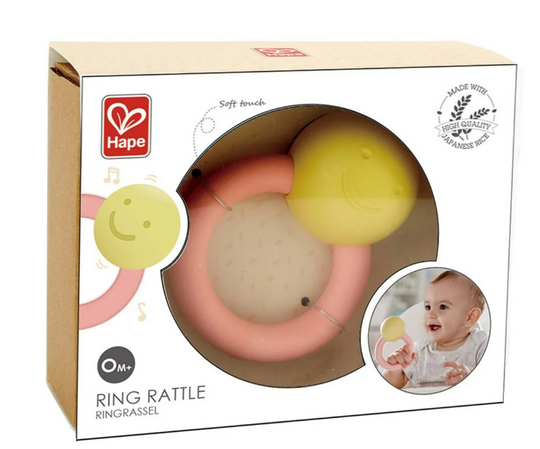 Made from a safe, rice-based material, this rattle has a happy face attached to a ring. Easy to grab and hold.