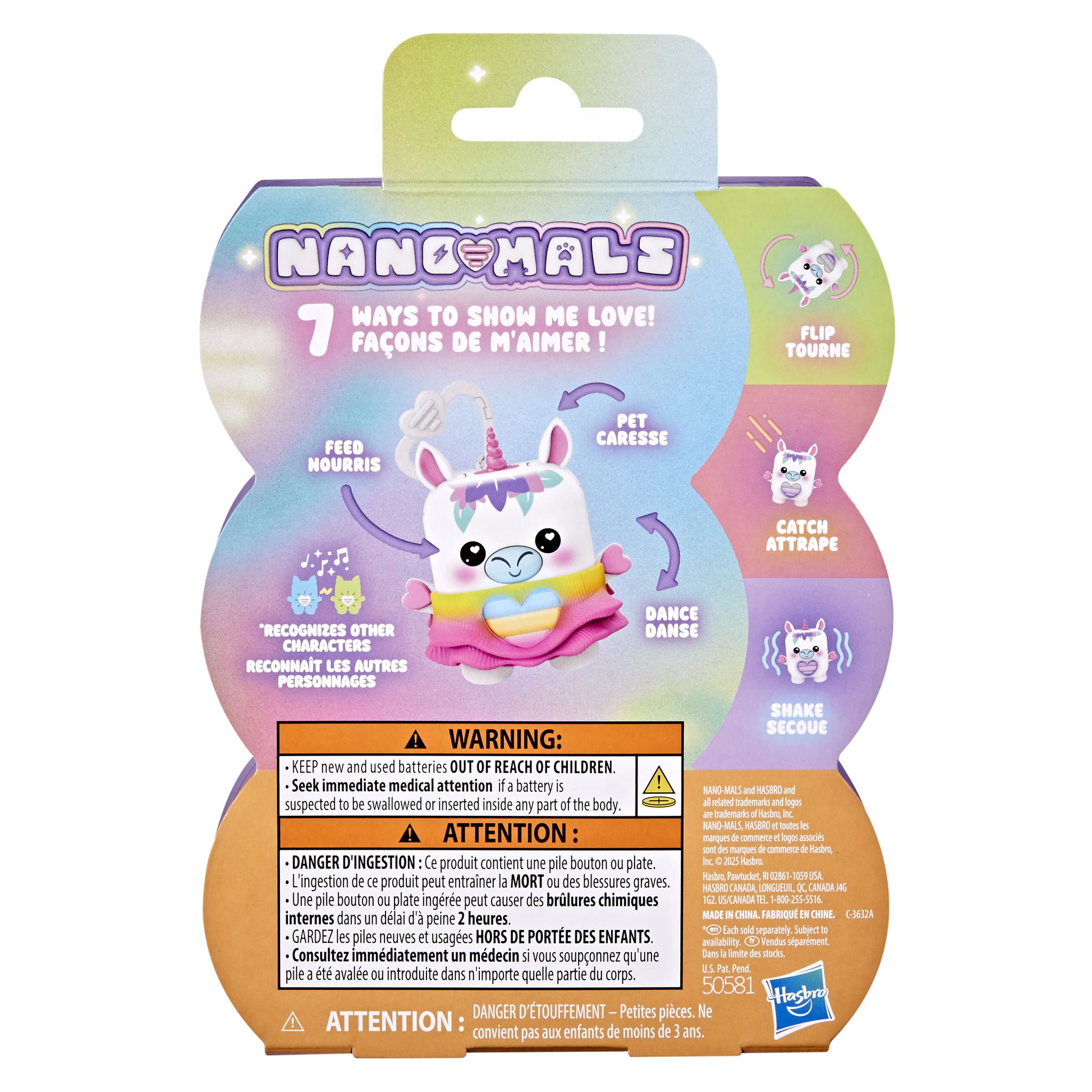 Nano-mals are electronic fidget toys and adorable mini companions that need your love! Each Nano-mals character has a colour-changing heart meter that kids can fill in so many fun and satisfying ways. When Meadowmist's heart meter drops, she'll make sounds to let you know she needs care. If her heart meter is blue, she needs pets, so press her ears. If her heart is orange, she's hungry -- press her mouth to pretend feed her. Is her heart pink? Click her arms up and down to make her dance. What about purple? She wants to move! Flip, catch, or shake to fill her heart. Meadowmist will celebrate her full heart with a song and colourful lights show. Give Meadowmist some extra flair with a textured snap-on pink and yellow outfit. Plus, she comes with an attached clip, so she makes a great kids keychain.