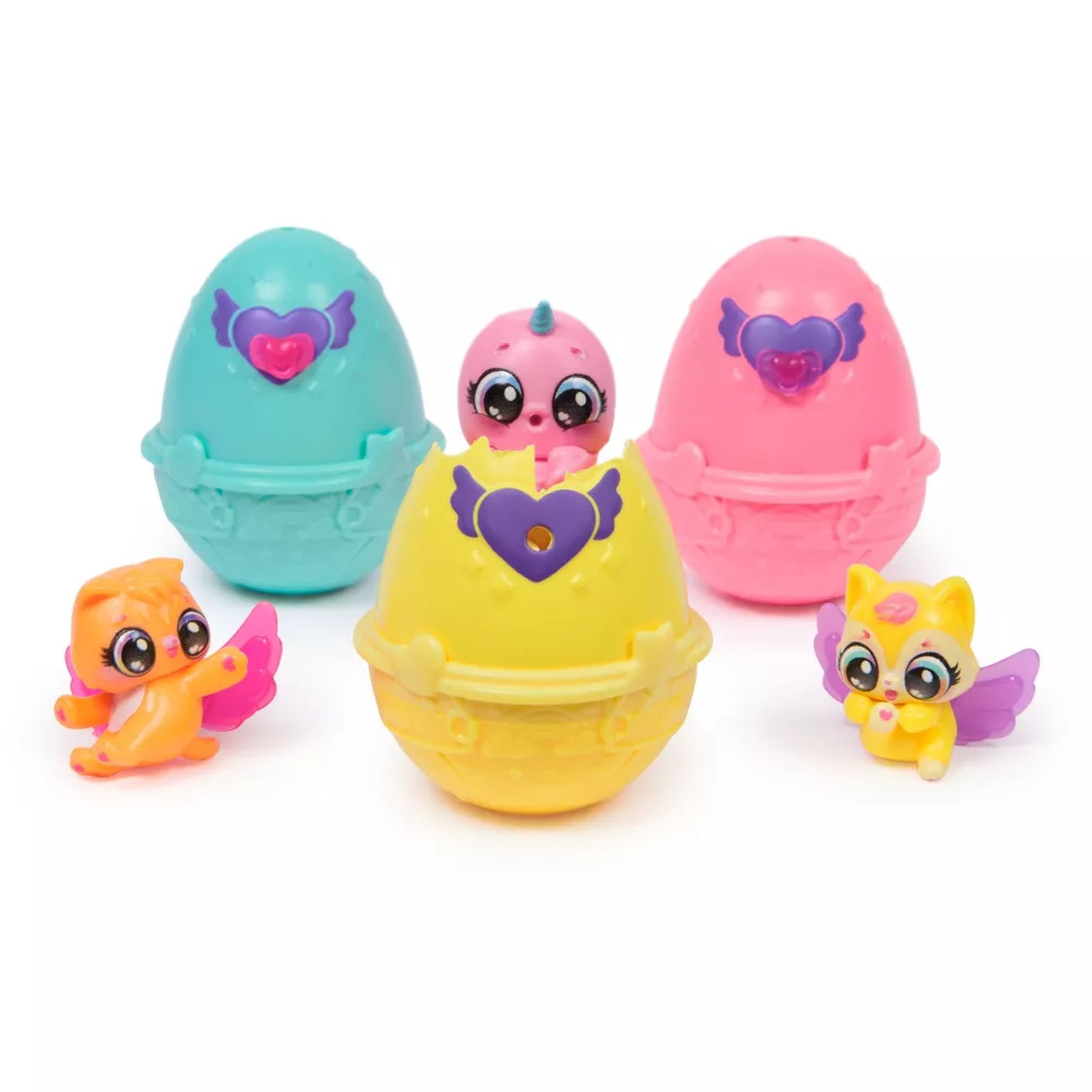Includes: 5 Hatchimals CollEGGtibles, 1 Basket, 5 Pairs of Wings, 1 Bottle, 3 Pacifiers, 1 Checklist, 1 Instruction Sheet