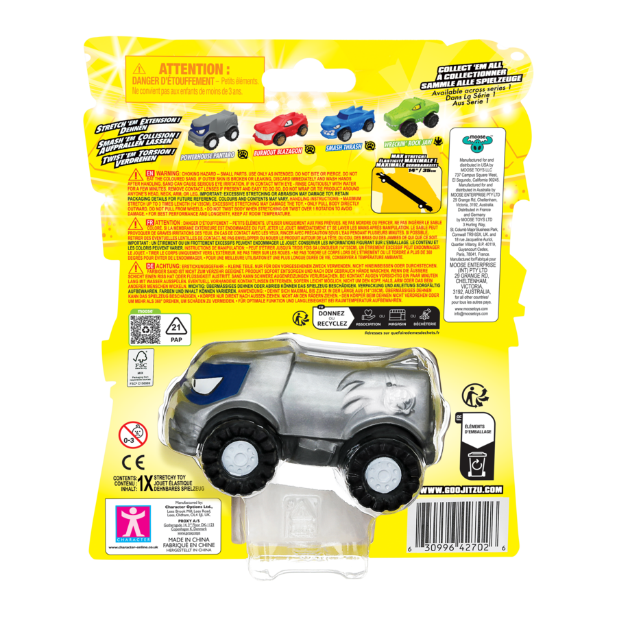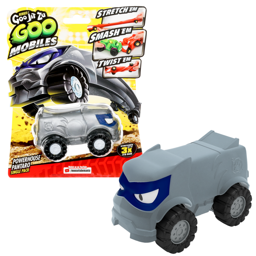 Everyone's favorite Heroes of Goo Jit Zu have become Goo Mobiles - the squishiest, stretchiest and gooiest toy vehicles ever! Blazagon, Thrash, Pantaro, Rock Jaw, Shredz and Tygor have transformed into cool cars, vans and pickup trucks! But these are no ordinary vehicles, Goo Mobiles are shape-shifting rides that are made to collide! They stretch, squish and twist like no other cars on the road! Kids can stretch their Goo Mobiles up to 3 times their size. Smash them together and watch them change shape. They can even be twisted! There are eight different Goo Mobiles to collect across Series 1.