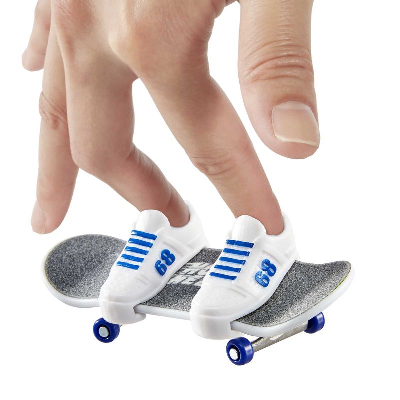 Embrace the full Hot Wheels Skate™ experience with this sweet set that includes a fingerboard and skate shoes plus one Hot Wheels® vehicle. The collection was designed in collaboration with skateboarding legend Tony Hawk, and each set has matching details featuring metallic board graphics and an exclusive Hot Wheels® vehicle.