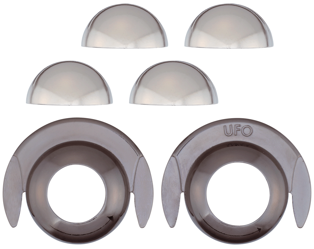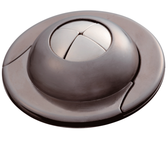 This uniquely shaped puzzle really does look like a UFO. The spheroidal pieces in the center may slip and slide away when you try to remove them, which makes finding the solution quite tricky. Designed by Vesa Timonen from Finland.