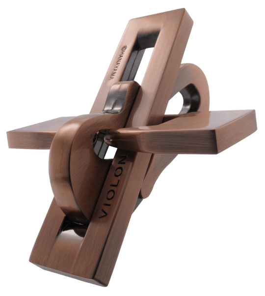 Patented in America in 1965, this puzzle was originally created by Joseph L. Litle. The idea to make this puzzle came to me after playing with a wooden copy built for me by my close, but now deceased friend, Tadao Muroi. The proportions have been changed considerably from the original plan in this new version. With this puzzle being styled after a violin and its strings, the key word here is… “strings.”