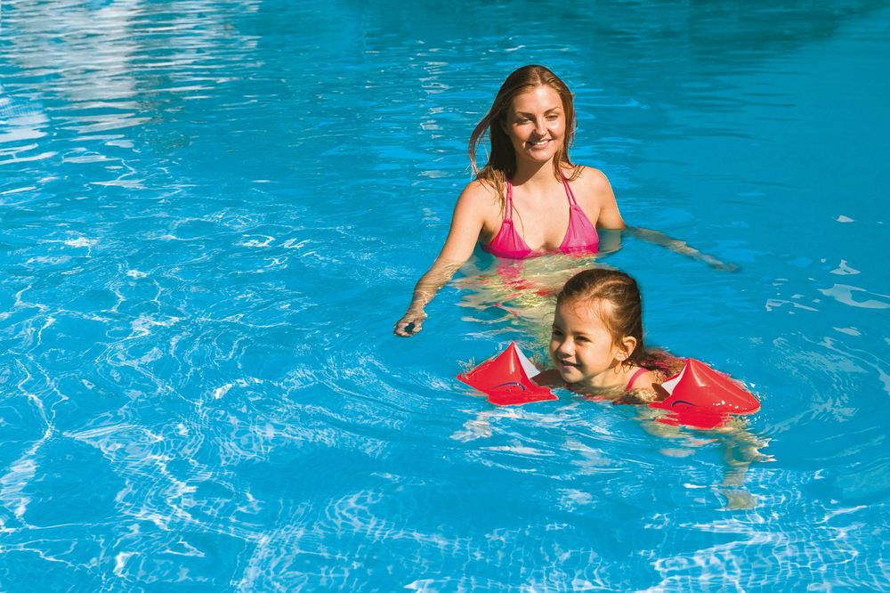 These Intex Deluxe Arm Bands are a great swim aid for children learning to swim. Your little ones will love heading to the pool with these Intex Pair of Inflatable Armbands. Each 10 gauge vinyl armband features 2 air chambers for buoyancy, making them a great accessory to help your beginning swimmer gain confidence in the water. Recommended for ages 3 to 6 years.