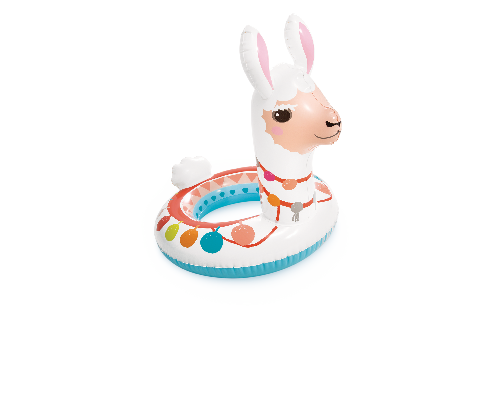 Kids will enjoy splashing in the pool with Intex Big Animal Rings. This assortment is available in three styles: Unicorn, Adorable Llama, and Alligator.