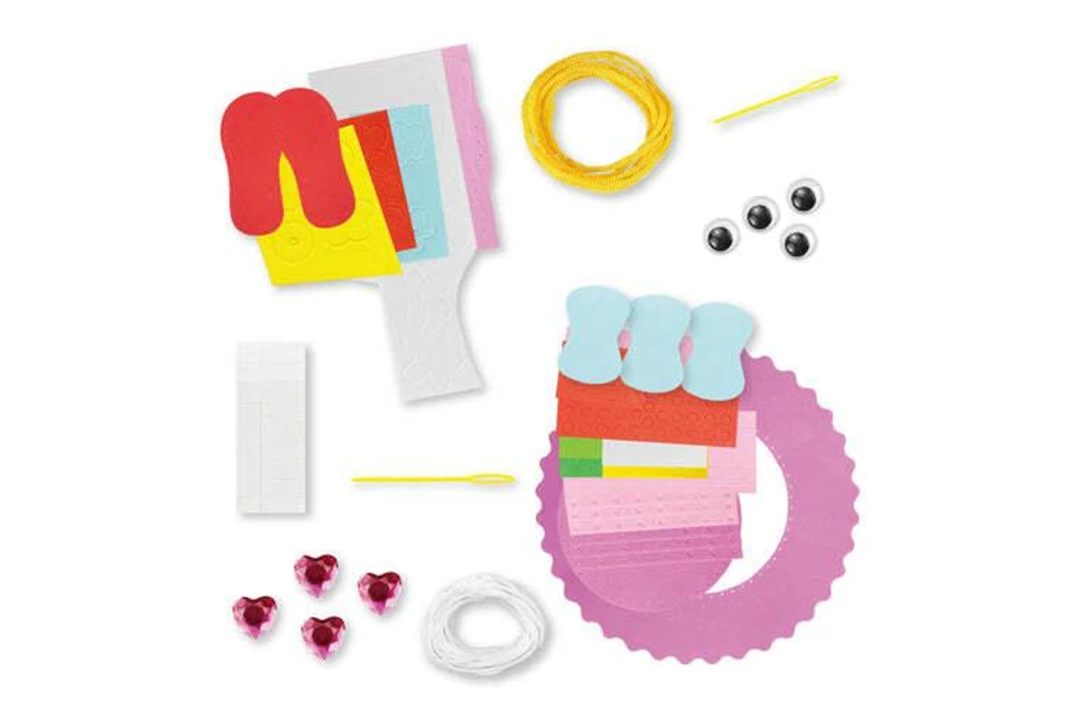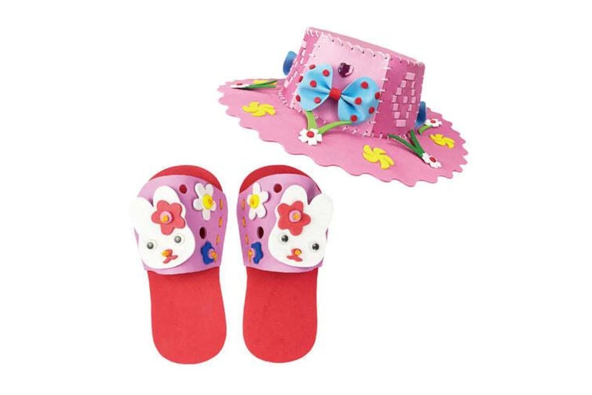 This kit comes with everything you need to make a fun hat and slippers!