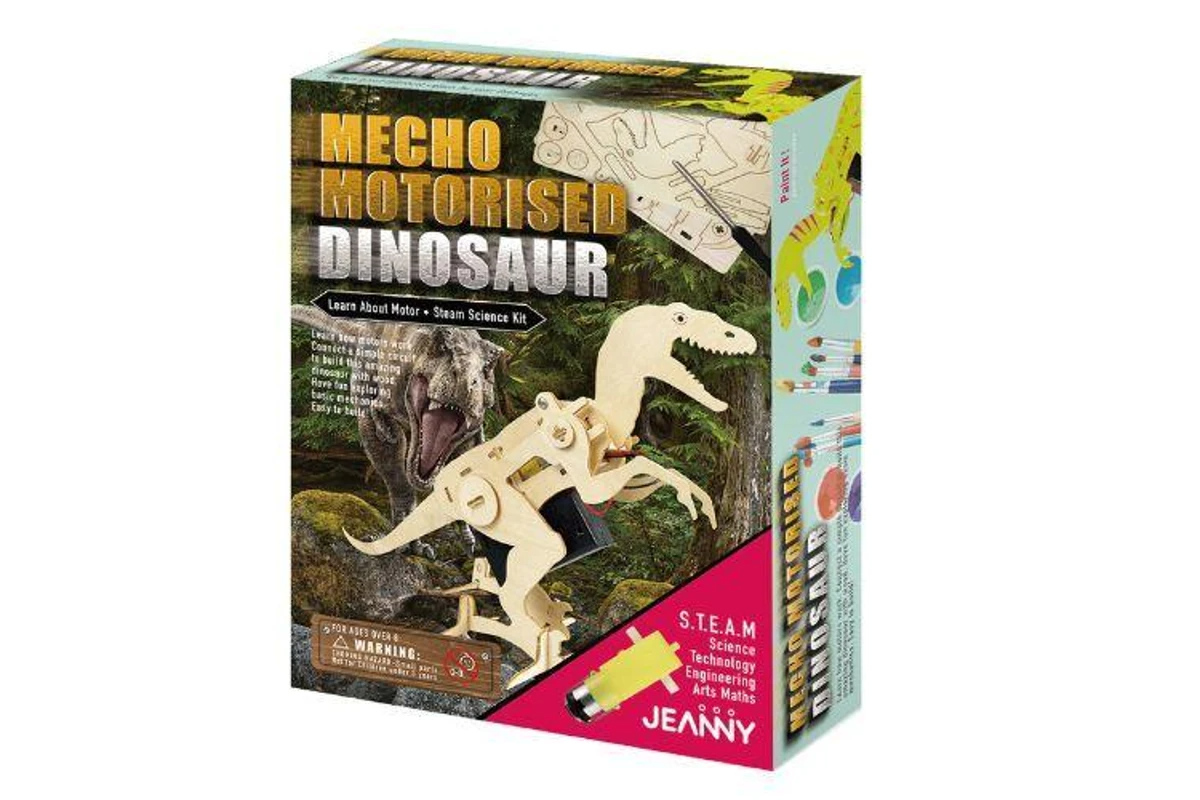 Jeanny Motorised Dinosaur learn how motors work. Connect a simple circuit to build this amazing dinosaur with wood.