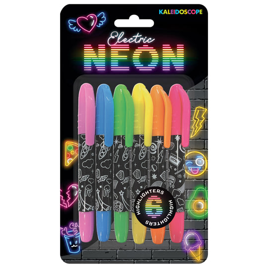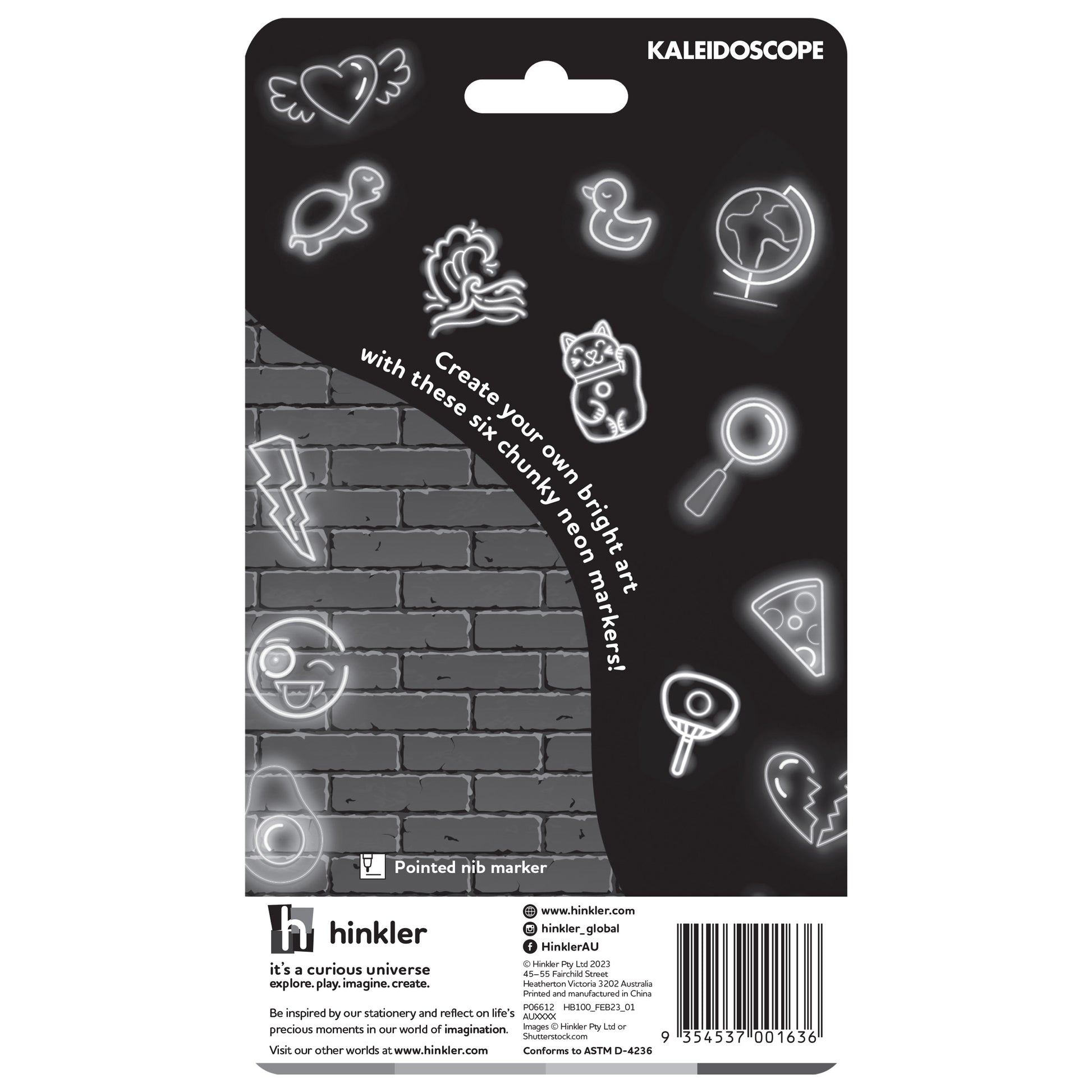 Create and draw your own brighter than brighter art with this handy pack of six Kaleidoscope chunky neon markers! The assorted pigments are bold and eye-catching, which is perfect for hand lettering, line art, and much more.