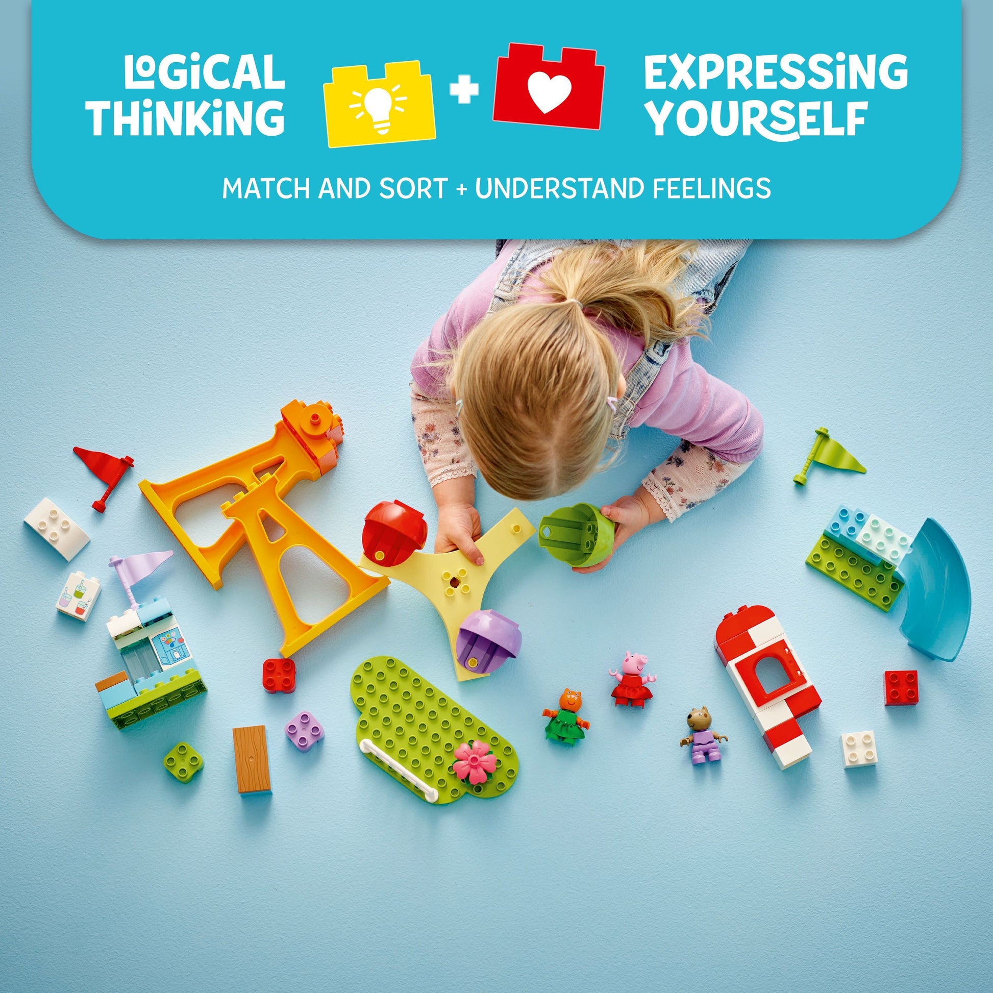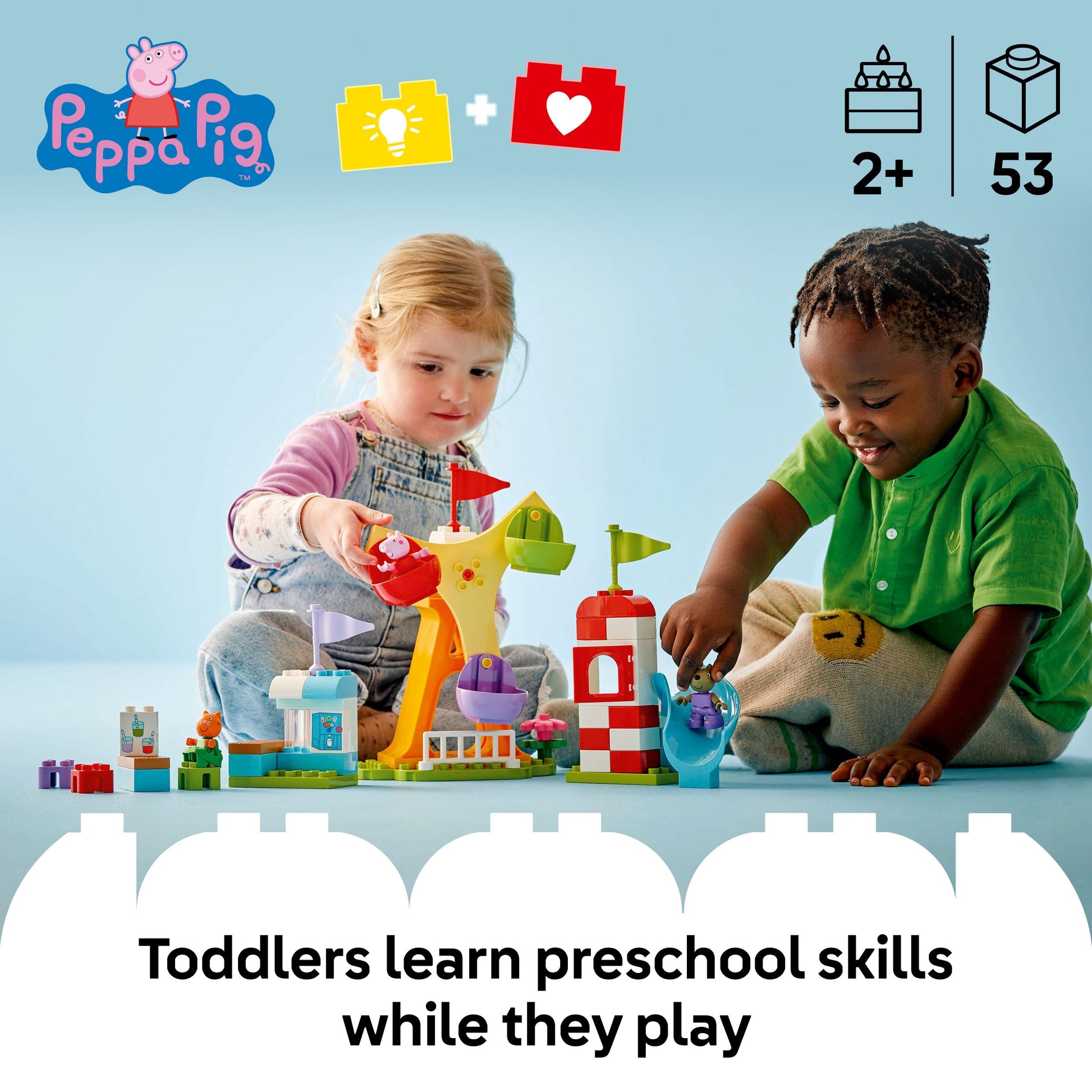 Amusement park toddler toy – The LEGO® DUPLO® Peppa Pig Funfair toddler toy lets preschool kids learn through play as they enjoy carnival fun with characters from their favourite show