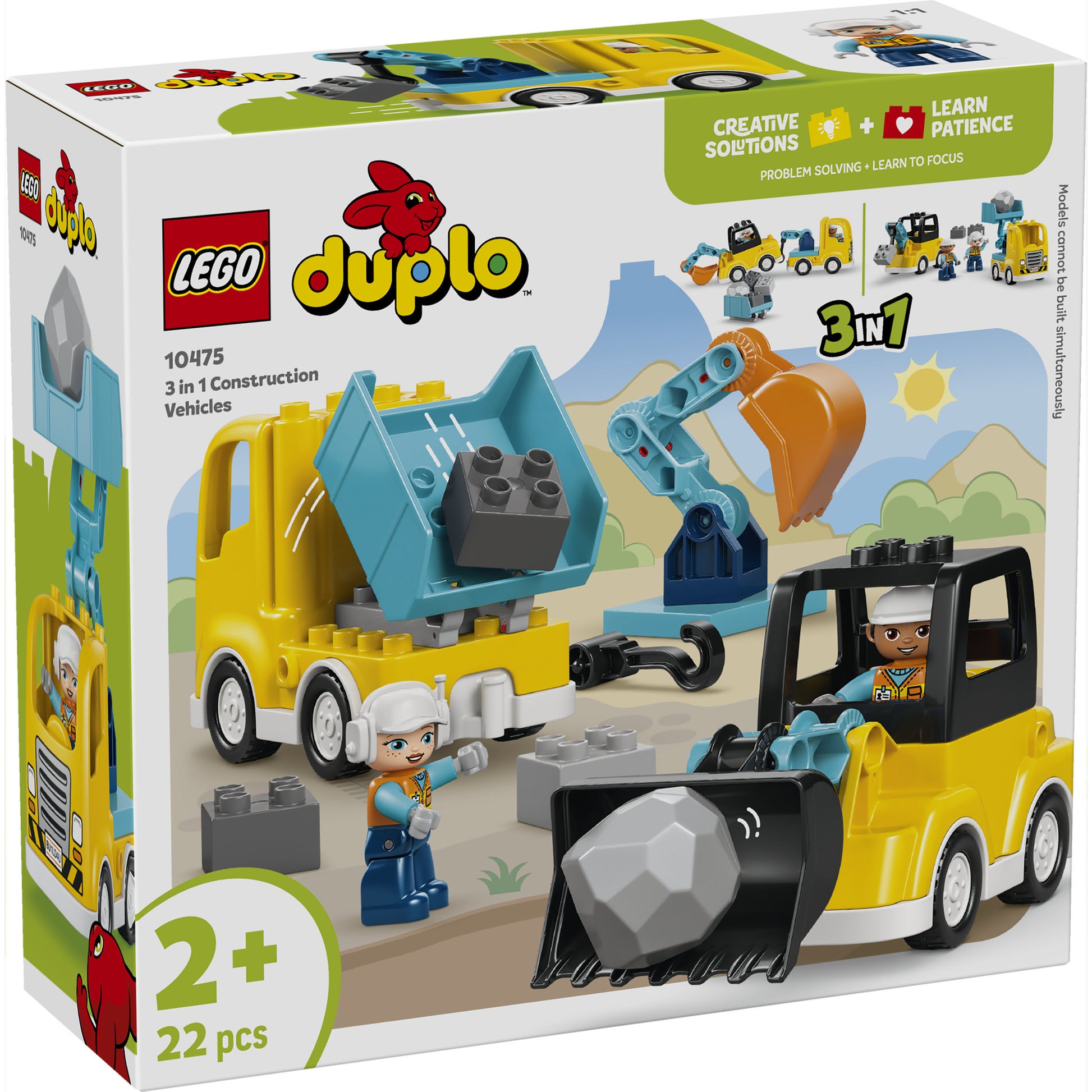 Building Toys for Toddlers – Rev up young kids’ creativity with the LEGO® DUPLO® Town 3 in 1 Construction Vehicles (10475) set, containing 22 bricks to assemble into 6 toddler truck toy building options