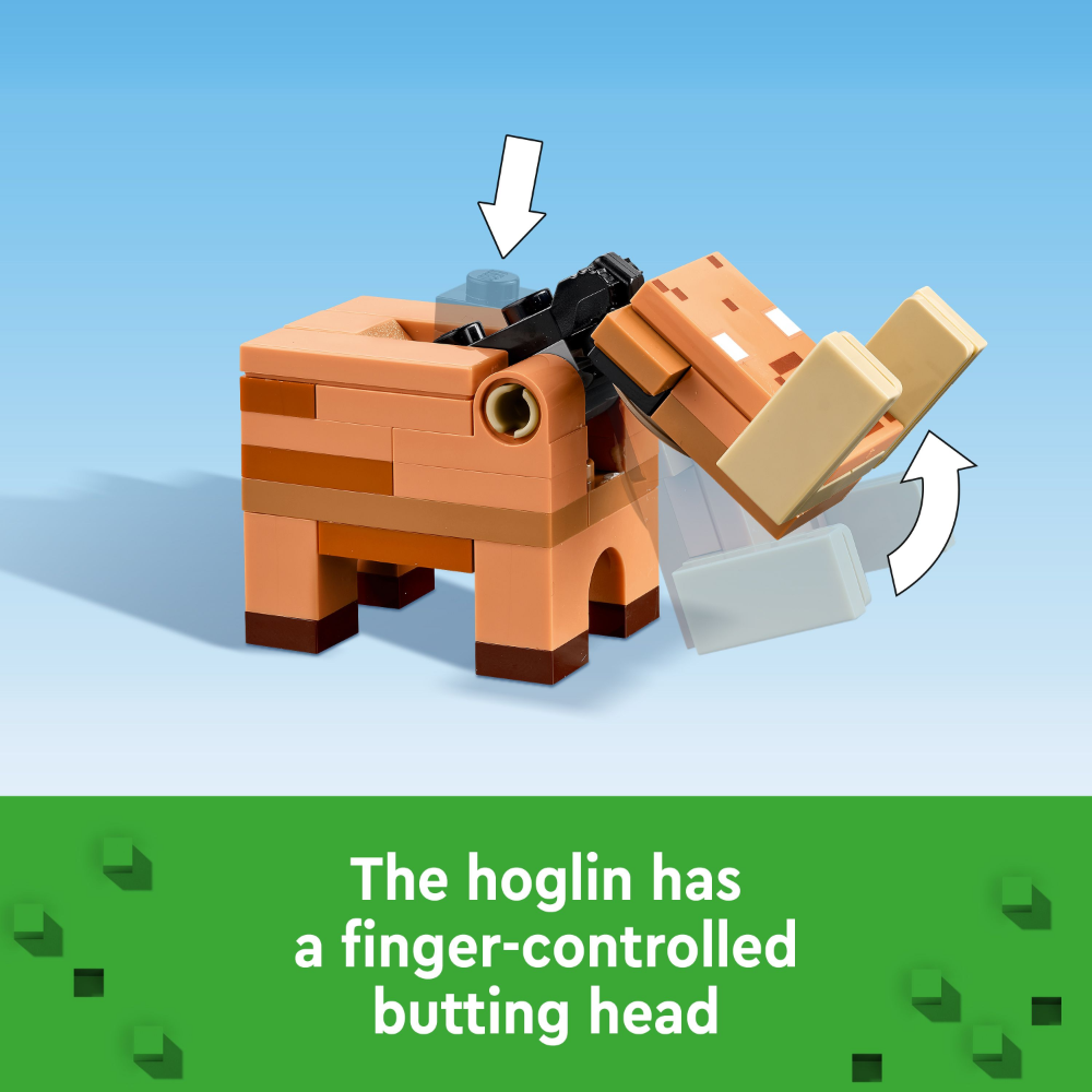 Minecraft® battle scene and action figures – Includes an Orc Warrior figure, a Minecraft ghast that shoots discs from its mouth, a hoglin figure, with its butting head, and 2 magma cubes