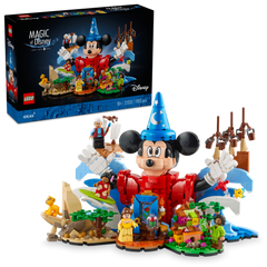 Iconic Disney characters – A buildable Mickey Mouse figure, Belle, Geppetto, Bruno and Lilo minifigures, plus Simba, Sebastian, Flounder and 3 Broom figures