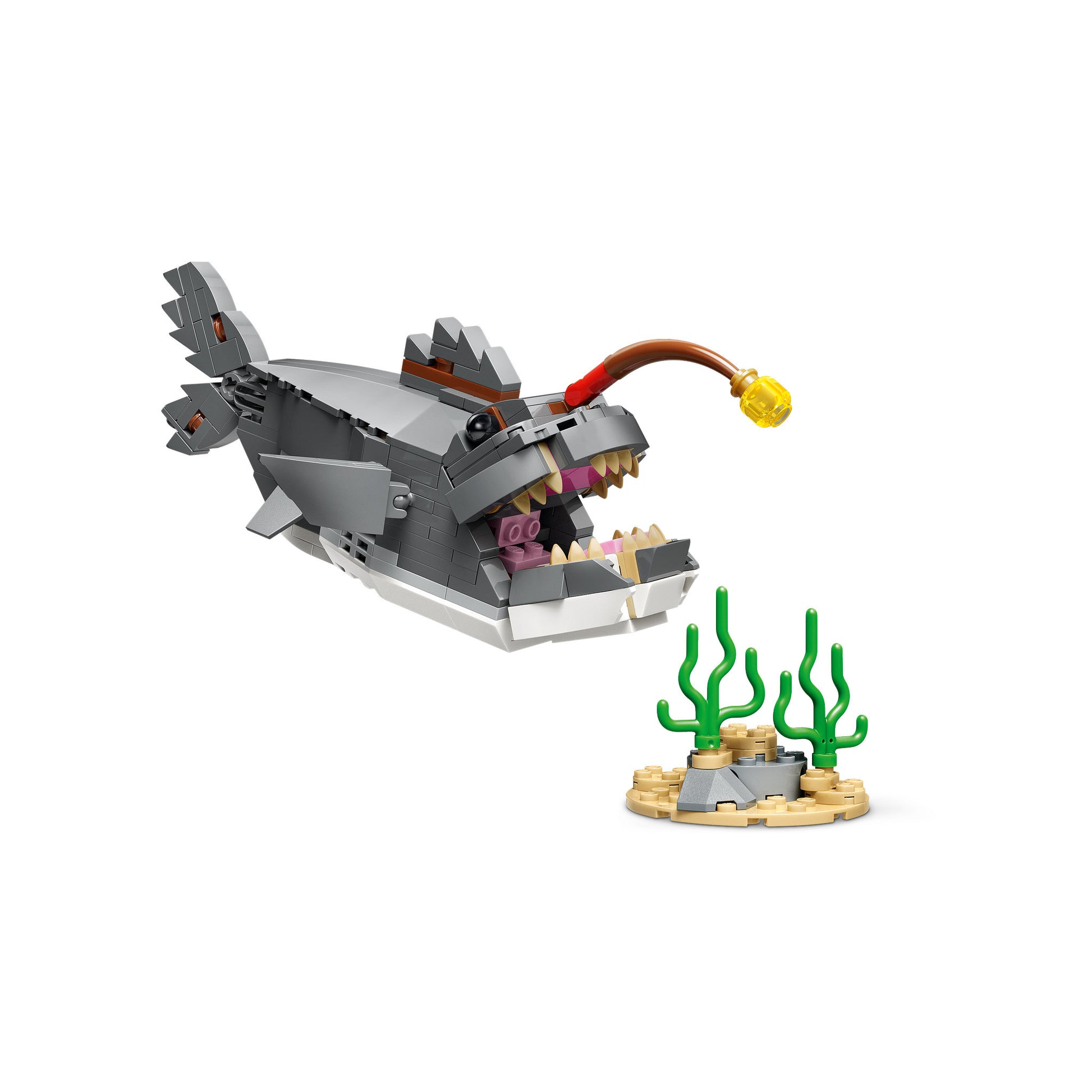 Dive to the bottom of the ocean for fun-filled adventures with 3 LEGO® sea animals! Help a shark guard a treasure chest from a pesky crab. Then rebuild it into an anglerfish that can move its mouth and fins, or a manta ray with a clamshell. What will you build? The choice is yours with this supercool 3 in 1 ocean figures playset.