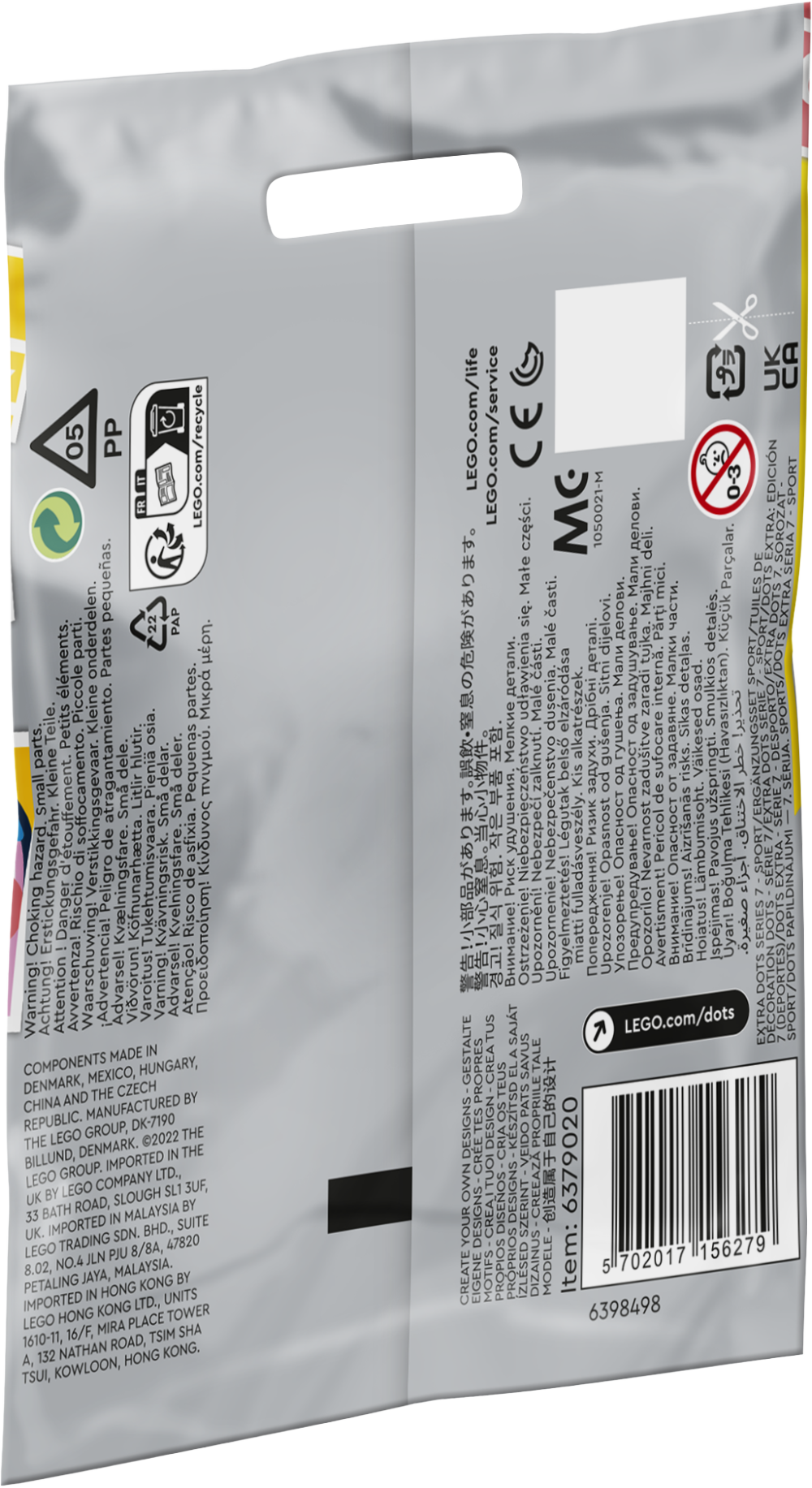- Safety first – LEGO® components are dropped, heated, crushed, twisted and analyzed to make sure this Extra DOTS Series 7 – SPORT bag meets rigorous global safety standards