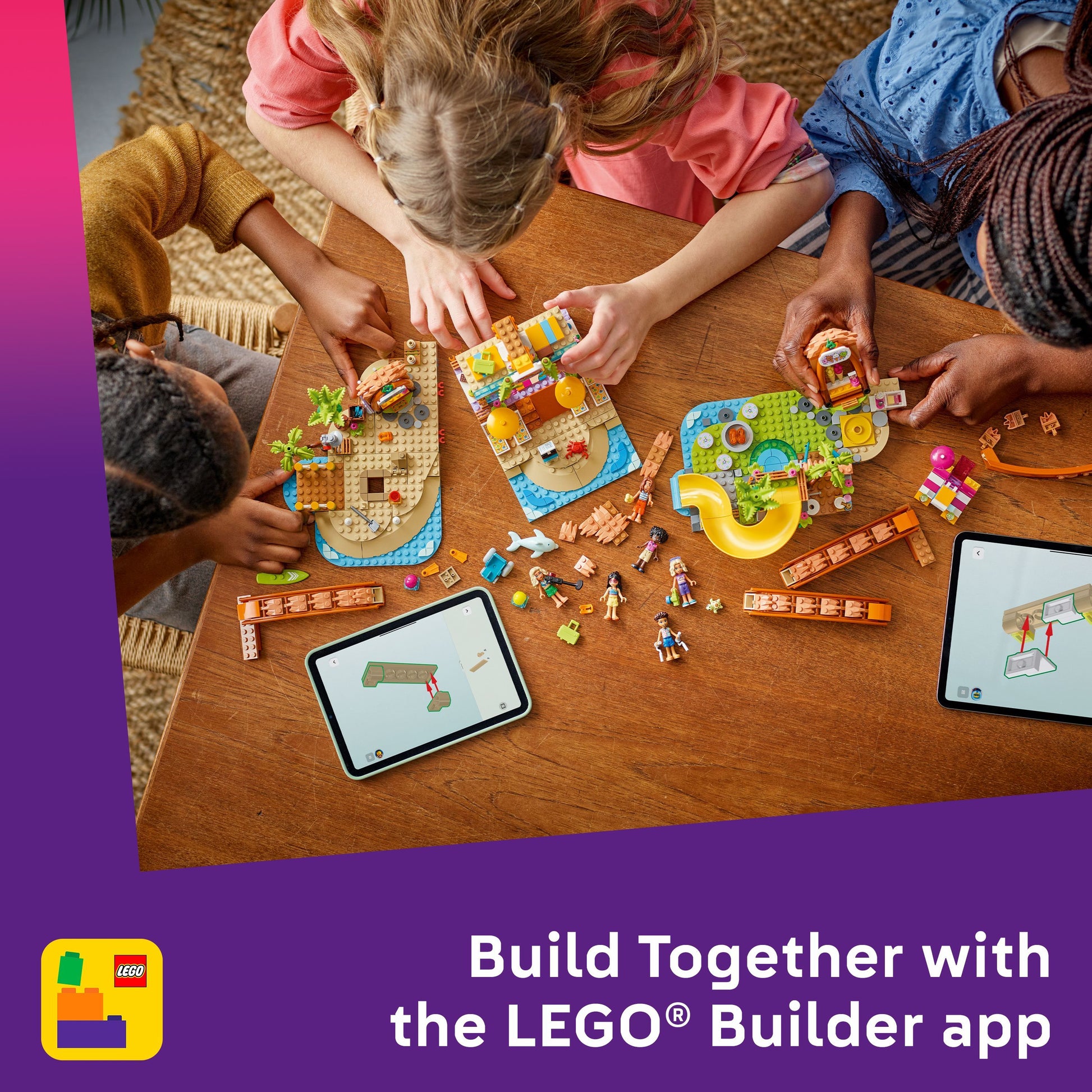 Make memories with your favourite crew at the beach resort. Build the fun-filled resort for Nova to explore with her friends and family. It’s packed with beach activities and water sports. Discover a pedalo, slide, ice cream stand, pool, fire pit and more. Remember to look out for the turtle and dolphin! With the LEGO® Builder app, you can have fun building with your own friends and family.