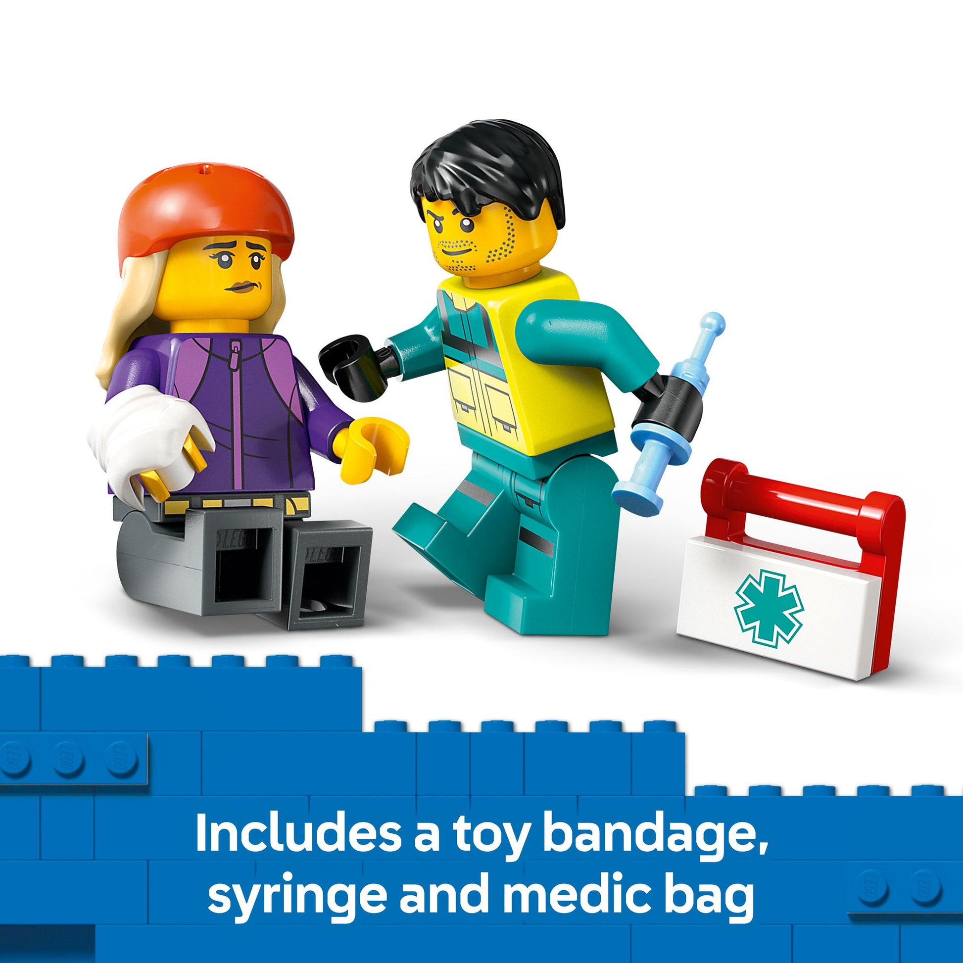 LEGO® minifigure accessories – This ambulance truck building set comes with fun accessories for pretend play, including a toy LEGO syringe, bandage and medic bag