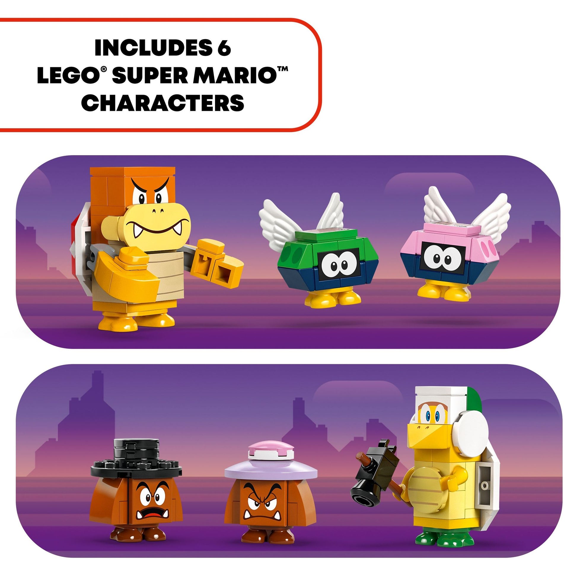 Adventure playset featuring 6 LEGO® Super Mario™ toy figures – A Hammer Bro, Boom Boom, 2 Goombas and 2 Para-Biddybuds