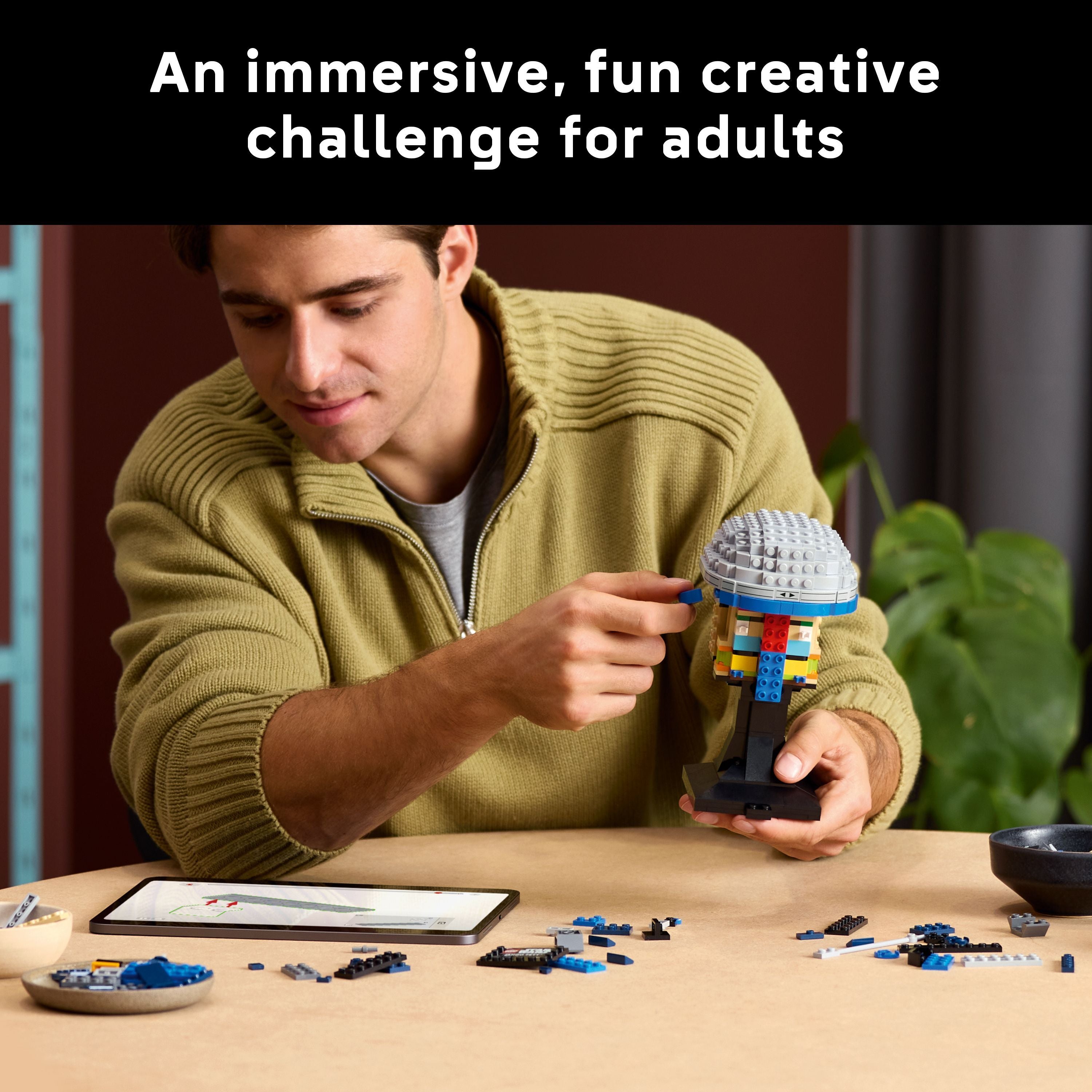 Display your respect for a legendary bounty hunter with this LEGO® brick-built Jango Fett helmet. Relive dramatic Star Wars: Attack of the Clones™ scenes as you carry out your challenging creative mission. Build unique details of Jango Fett’s helmet, including the adjustable rangefinder antenna. Place your creation on the stand with a nameplate to complete an impressive centrepiece.