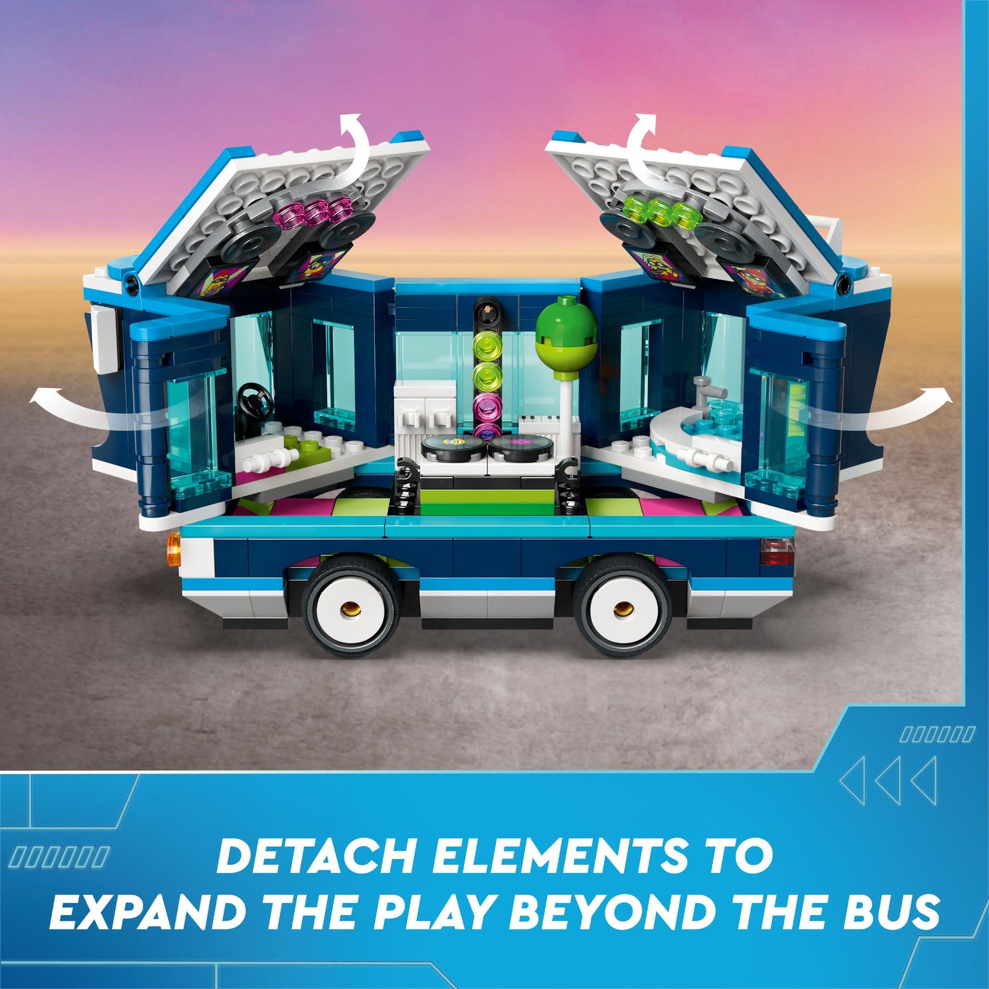 Versatile vehicle toy – The bus has a driver’s seat and a bar on the roof (for Gus to hang onto!) and splits open halfway down one side to reveal a DJ station, dance floor and hot tub for parties