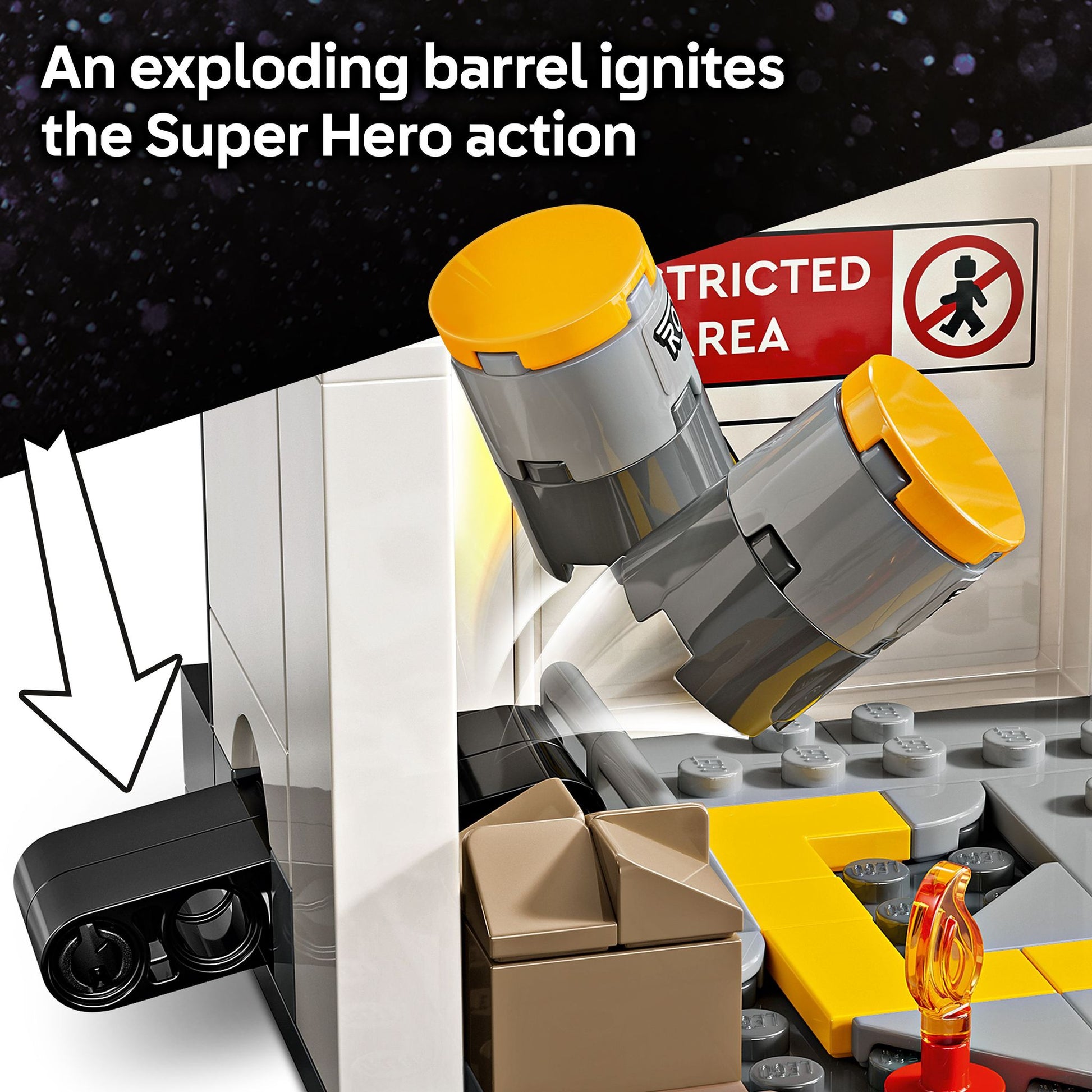 Super Hero adventure LEGO® set – An exploding barrel feature and a Quinjet aircraft with foldable wings and an opening cockpit boost imaginative play-and-display possibilities