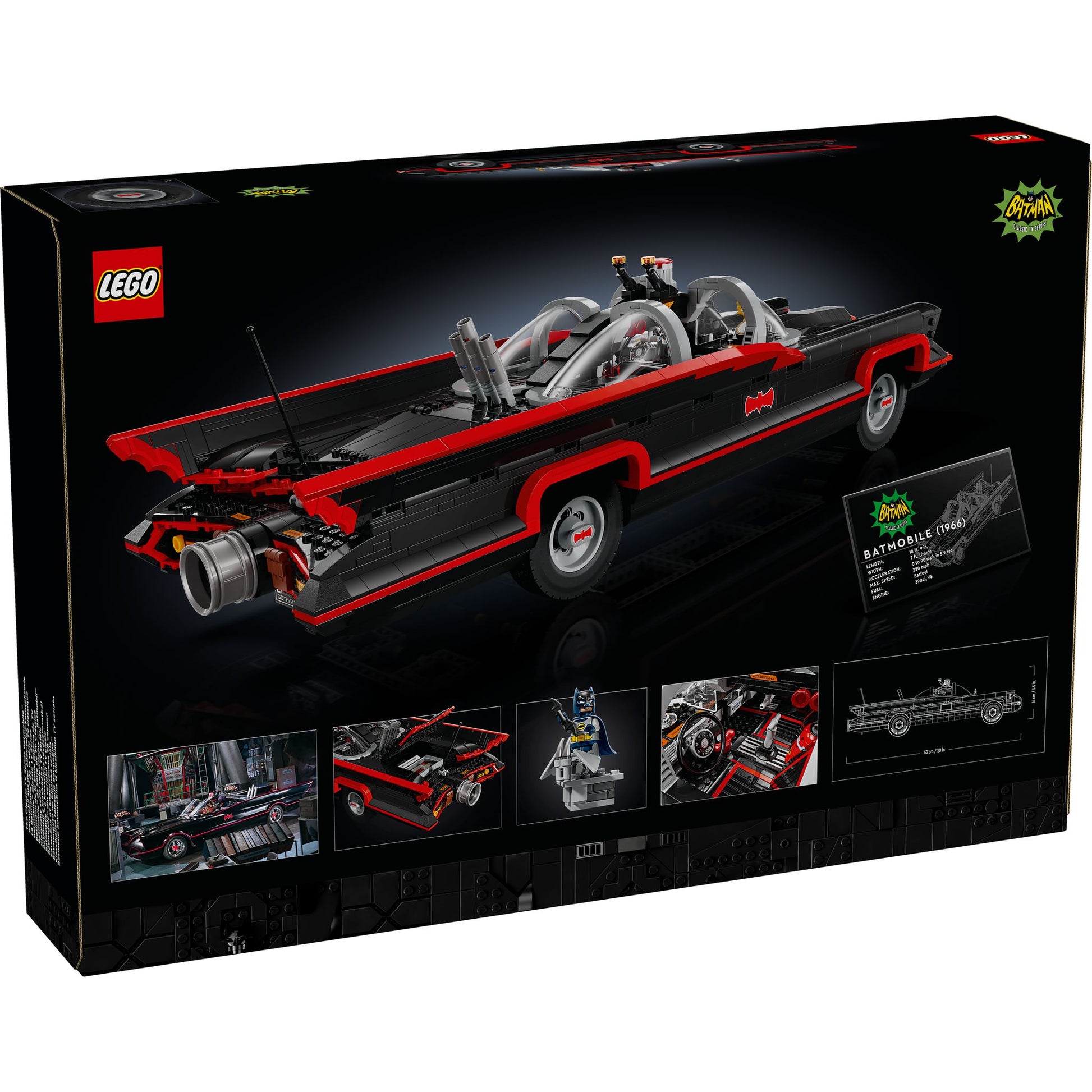 Bring the legendary Batmobile™ from the 1966 TV show to life with this eye-catching model designed with adult enthusiasts in mind. Authentic features include a molded windshield, moving wheels, decorations and an opening trunk containing the Bat-Computer. For added prestige, this collectible build-and-display model comes with a vehicle-information plate and a 1966-style Batman™ minifigure.