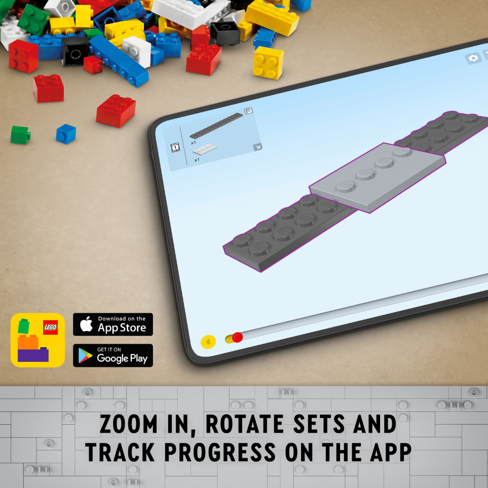 A new way to build – Let the LEGO® Builder app guide kids on an intuitive building adventure. They can save sets, track progress, zoom in and rotate models in 3D while they build