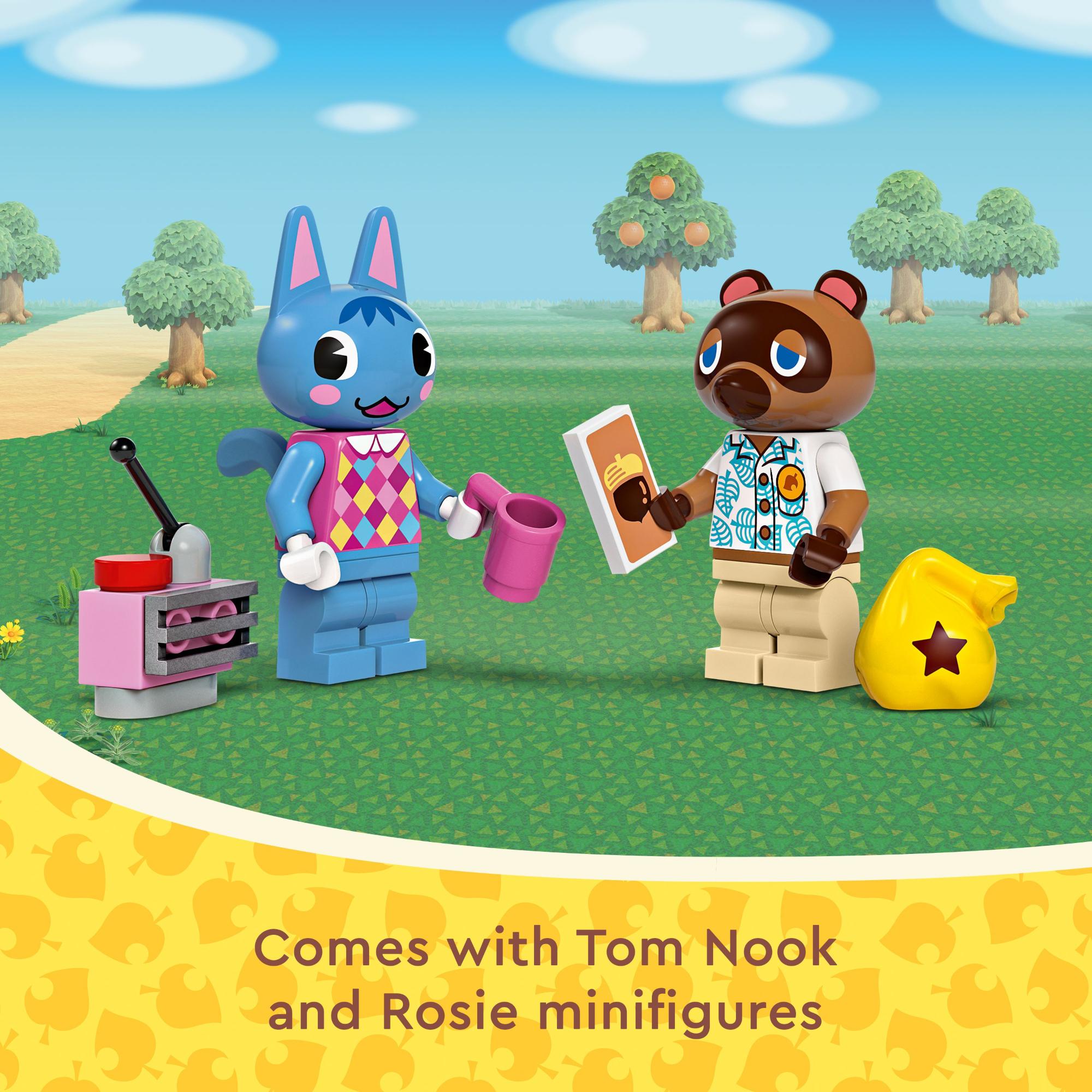 Customizable kids’ toy – Buildable toy comes with Rosie and Tom Nook minifigures, 2 iconic Animal Crossing™ buildings, lots of accessories and interchangeable baseplates