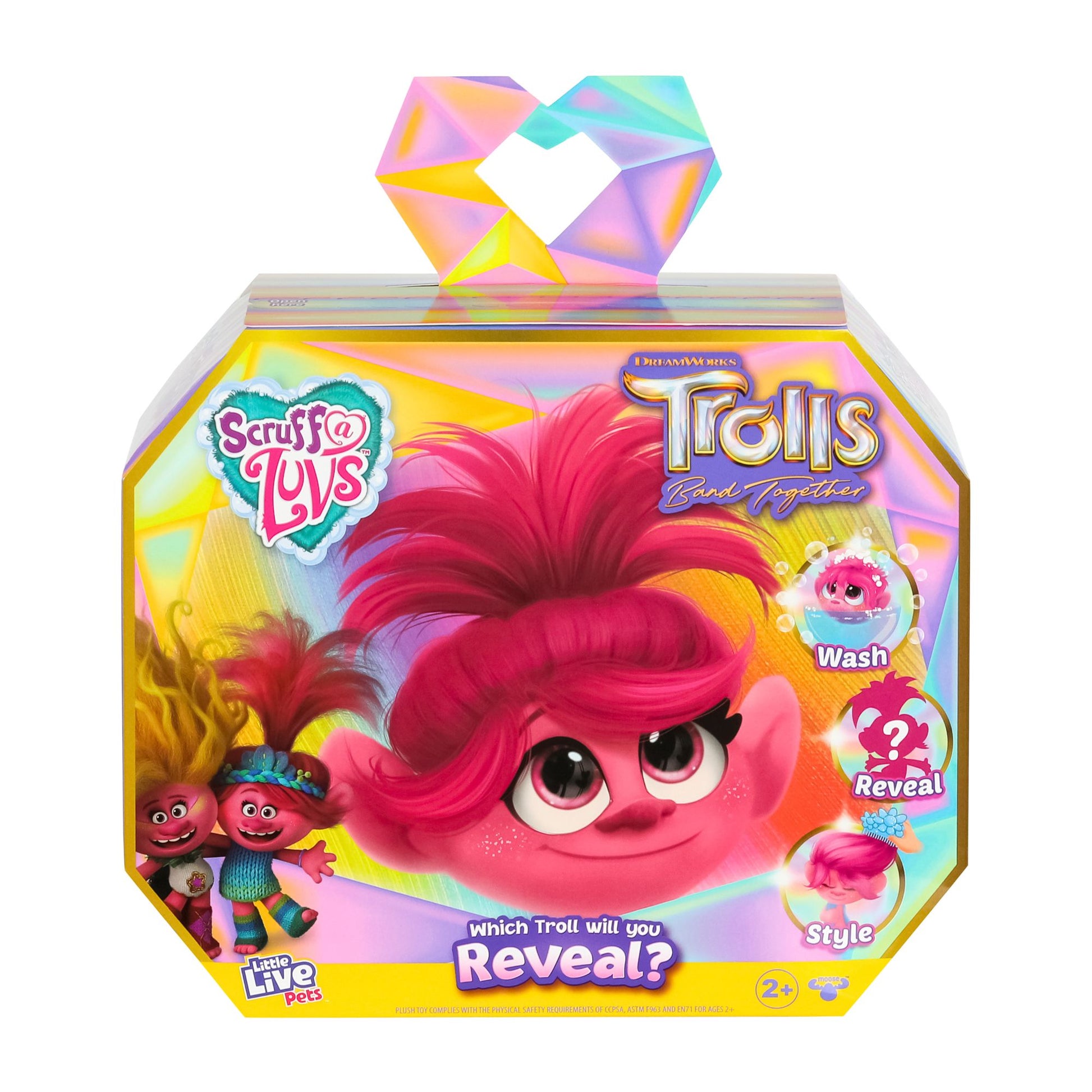 Now your child can wash, reveal and style one of the Trolls from the DreamWorks Trolls Band Together movie! Everyone's favorite plush surprise toy - Little Live Pets Scruff-A-Luvs have joined with DreamWorks Trolls to create a super-fun reveal toy that girls will love!